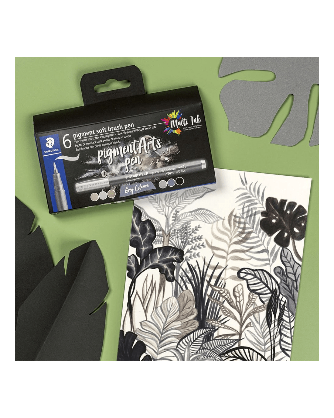 Sold by OfficeworksStaedtler Pigment Arts Soft Brush Pens Grey Colours 6 Pack