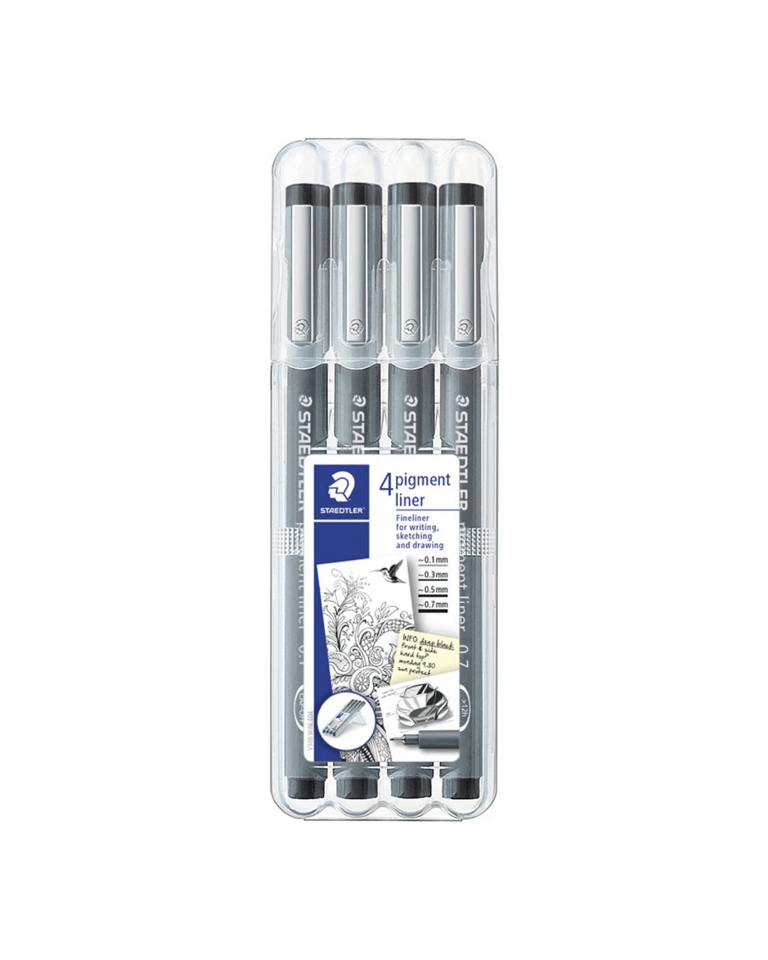 - This pack includes 4 fineliners with the following nib sizes: 0.1, 0.3, 0.5 and 0.7 mm.