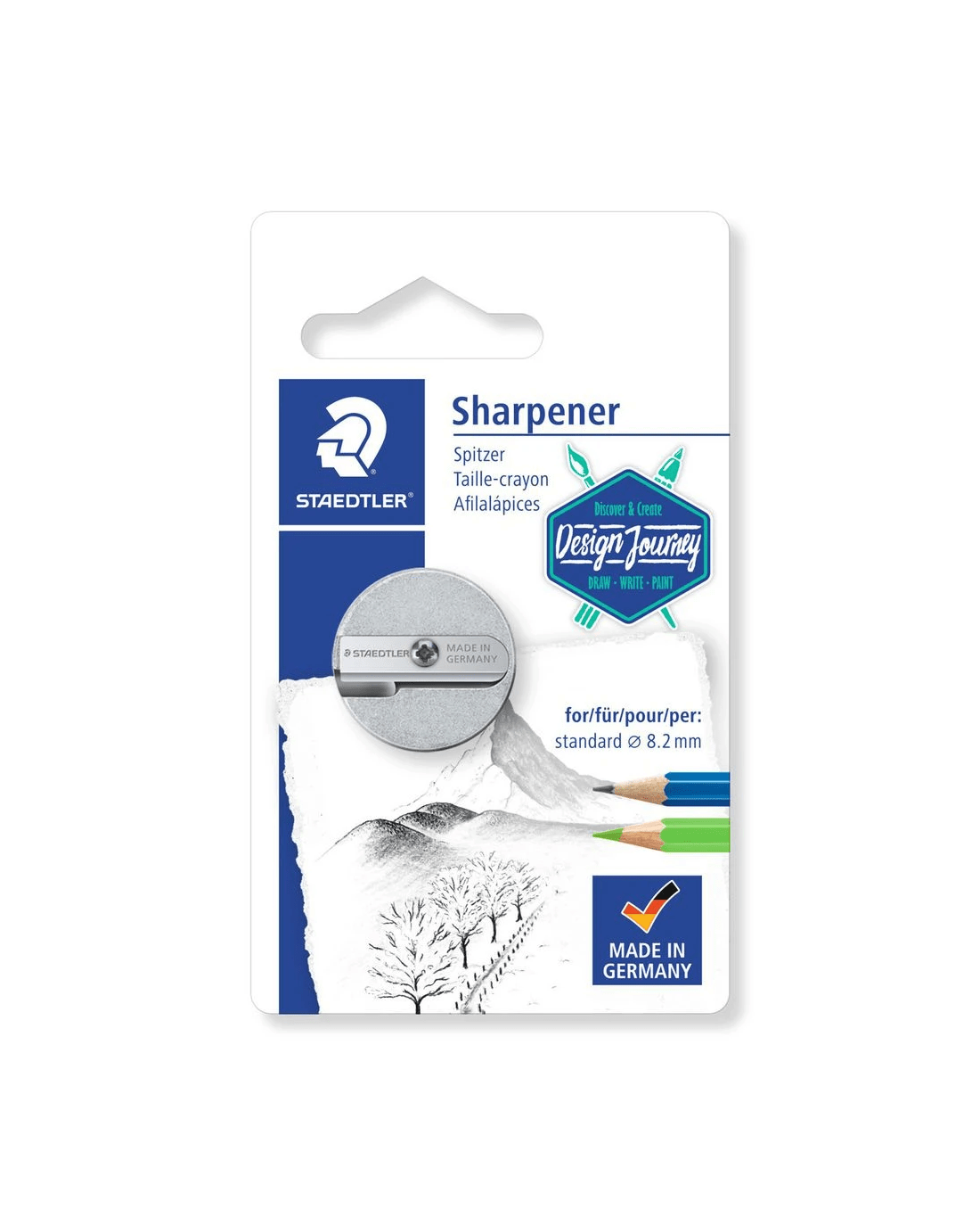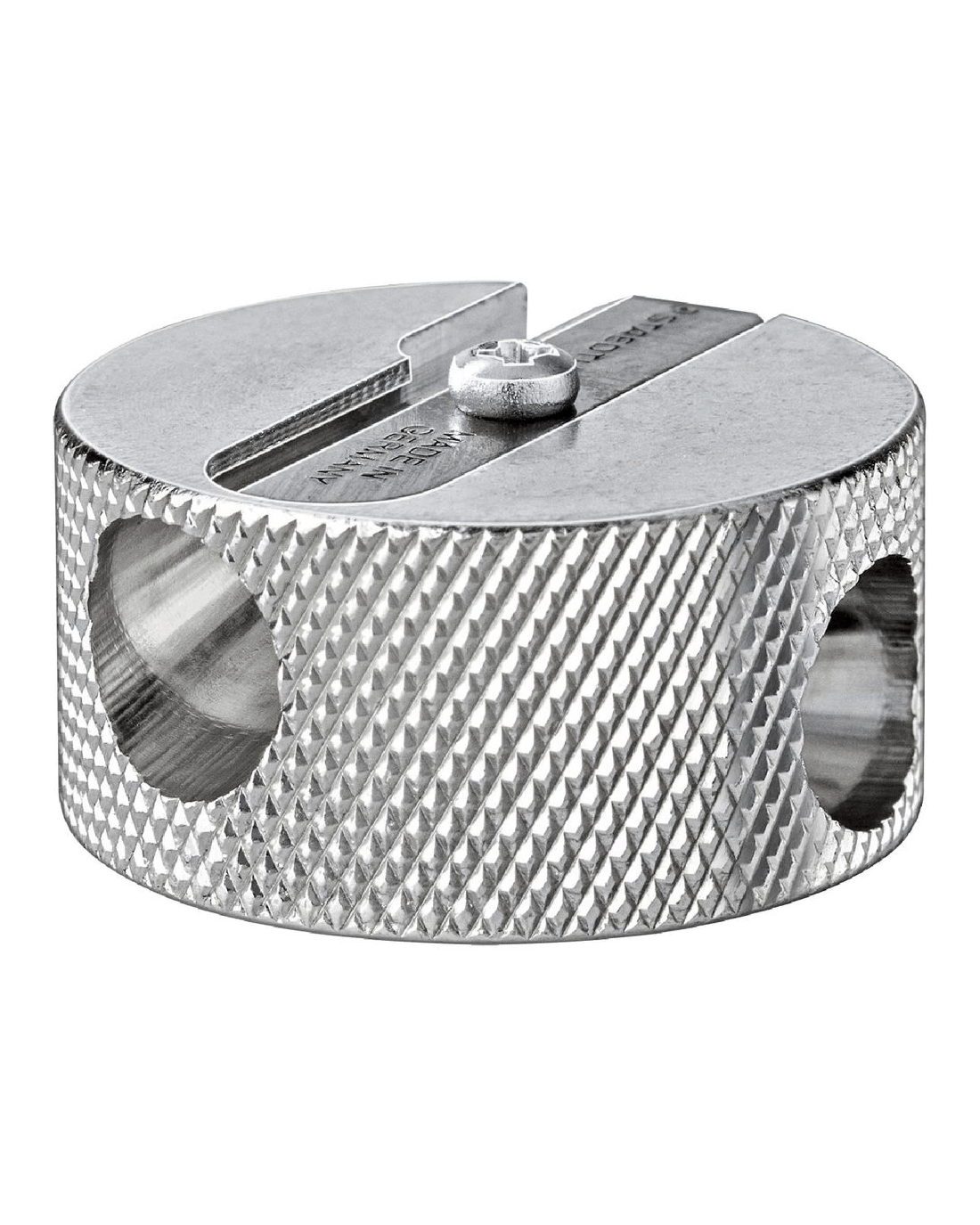 This Staedtler Double Hole Sharpener is manufactured in Germany and has a lightweight, hard-wearing magnesium body with premium blades. Two holes cover all of your sketching needs, with one sharpening angle of 23°, for clear and accurate lines, and the second sharpening angle of 30°, for broad, soft lines.