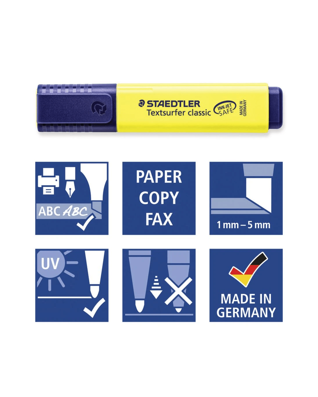 These Staedtler Textsurfer Highlighters are great for highlighting important text, drawings and more. The ink is fast drying so it won't smudge on your pages and is encased in a polypropylene barrel to prevent the ink inside from drying out.