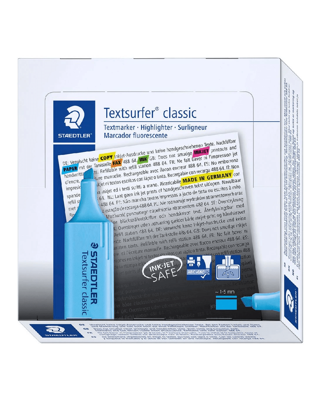 The Staedtler Textsurfer is a super fluorescent highlighter for paper, copy and fax that will make text stand out from the page. The highlighter is inkjet safe so you don't have to worry about smudging inkjet printouts and hand written text.