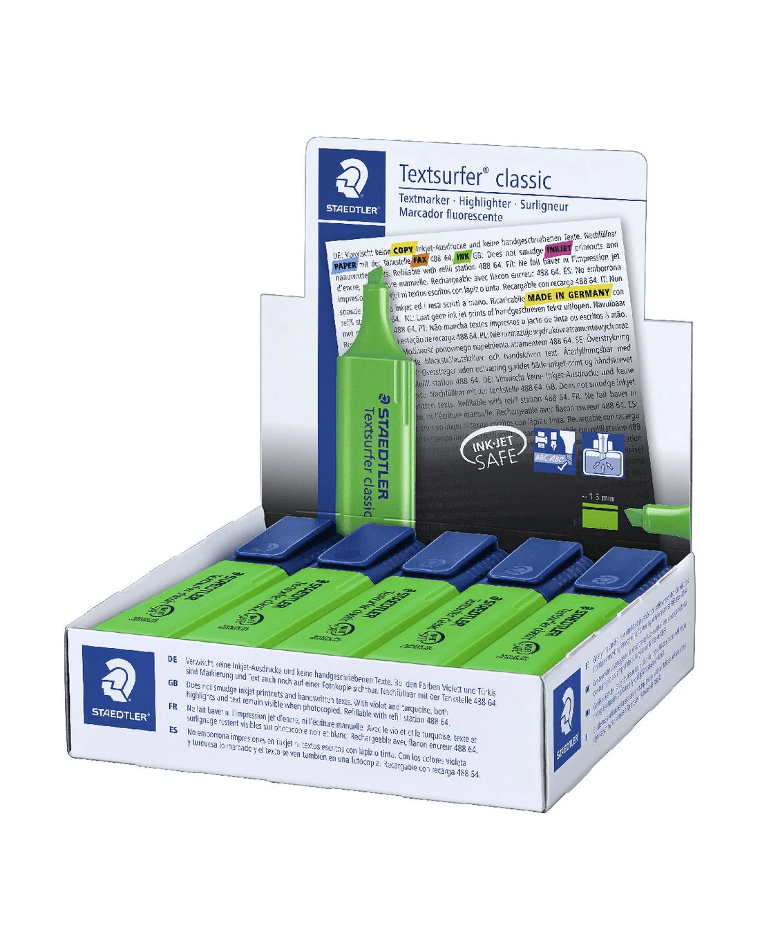 - These highlighters can be refilled with green ink, known as product code ST488645GN.
