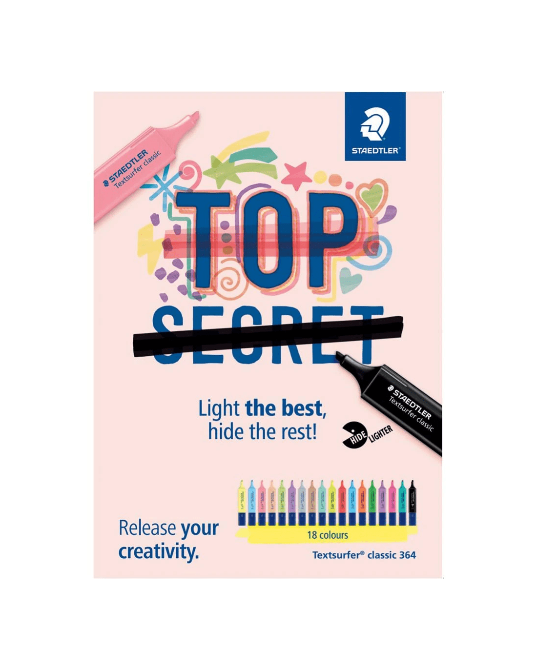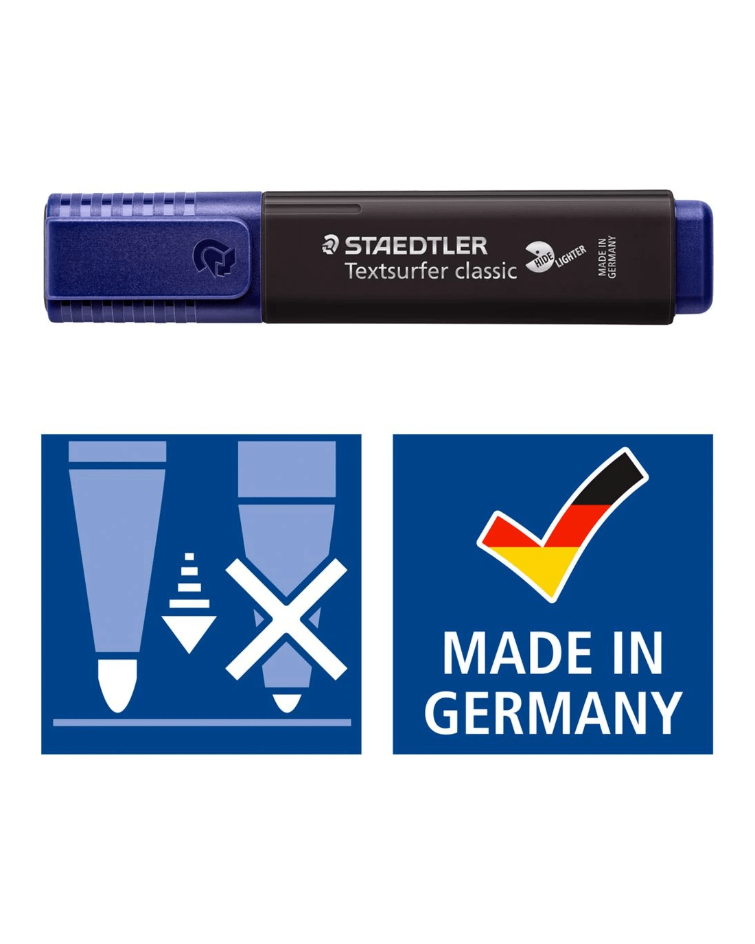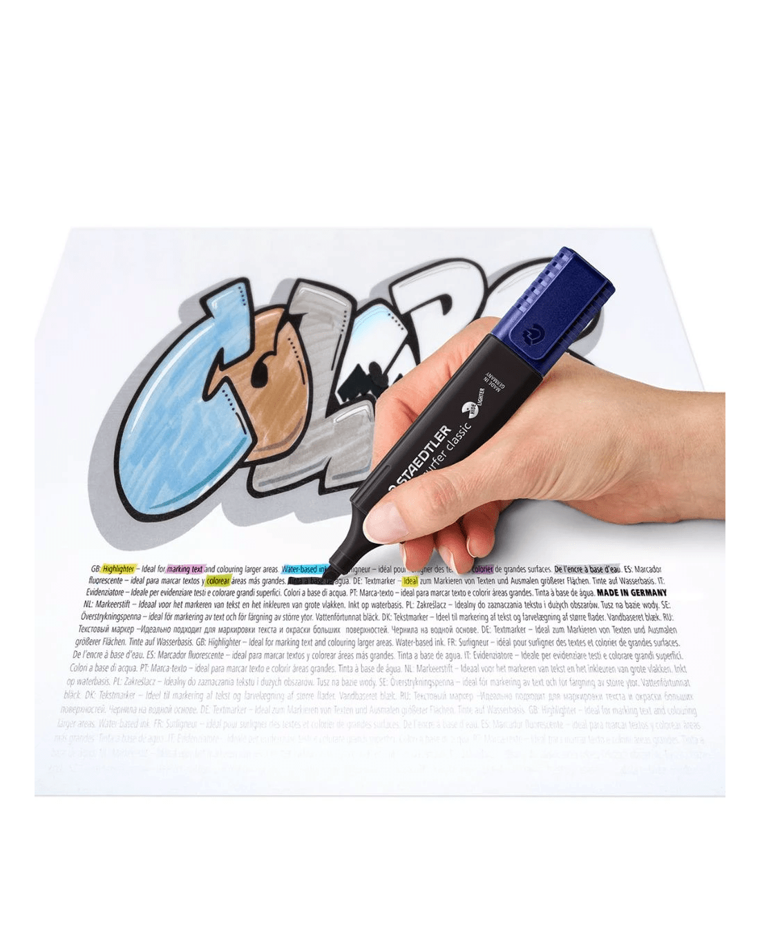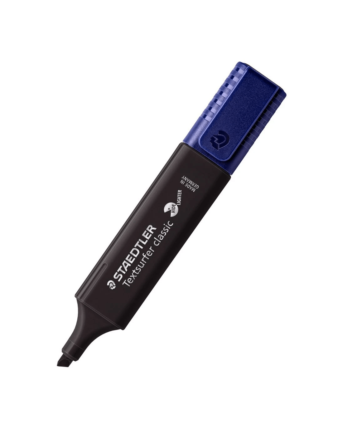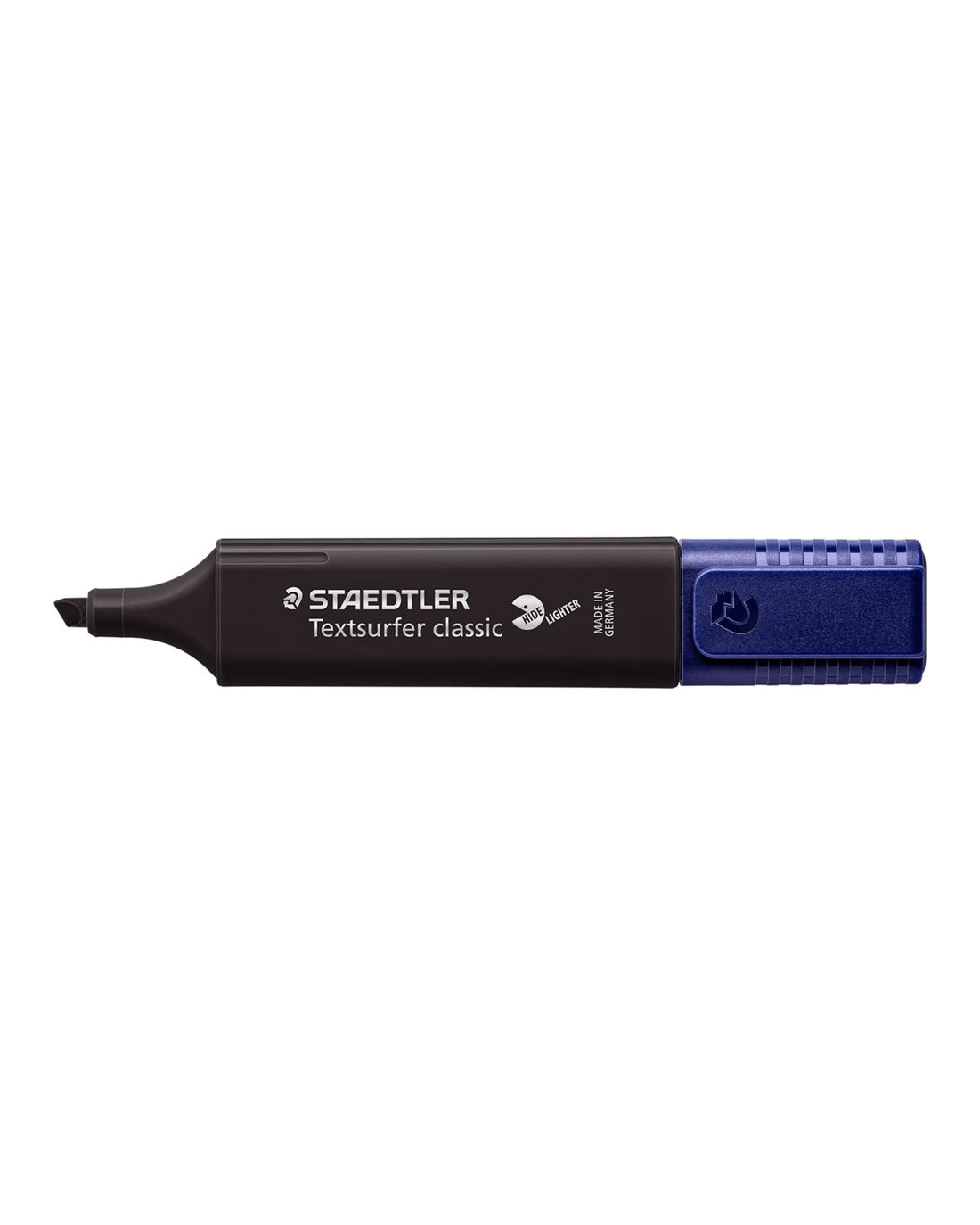 This Staedtler Textsurfer Black Highlighter is ideal for covering up texts and lines while remaining legible and illegible after copying. It's got a large ink reservoir for extra-long performance, a twist cap for easy opening, and a PP barrel and cap to guarantee long service life. Plus, it has a fast-drying water-based ink, is airplane safe using automatic pressure equalisation to prevent leaking on board and has an ultra-soft chisel tip.