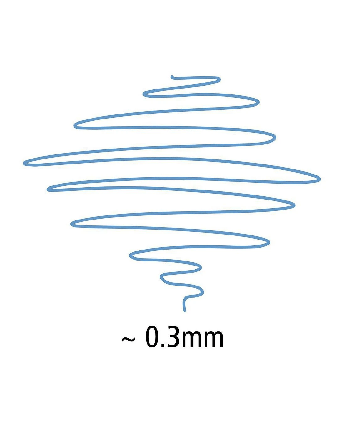 - The fineliner has a line width of 0.3 mm and has a superfine, durable metal clad tip.