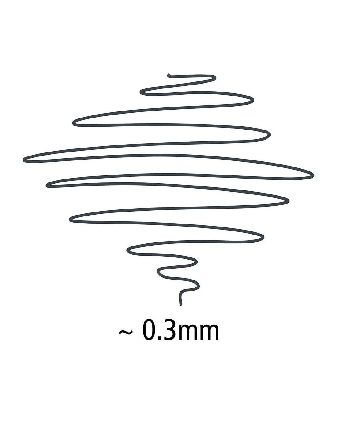 - The fineliner has a line width of 0.3 mm and has a superfine, durable metal clad tip.