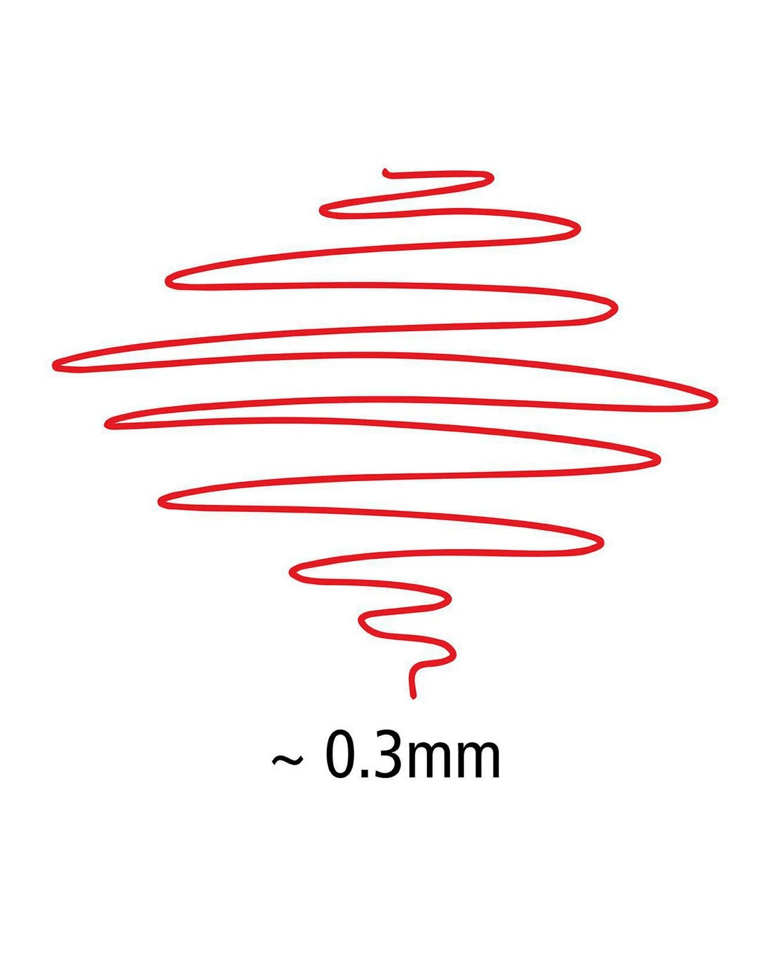 - The fineliner has a line width of 0.3 mm and has a superfine, durable metal clad tip.