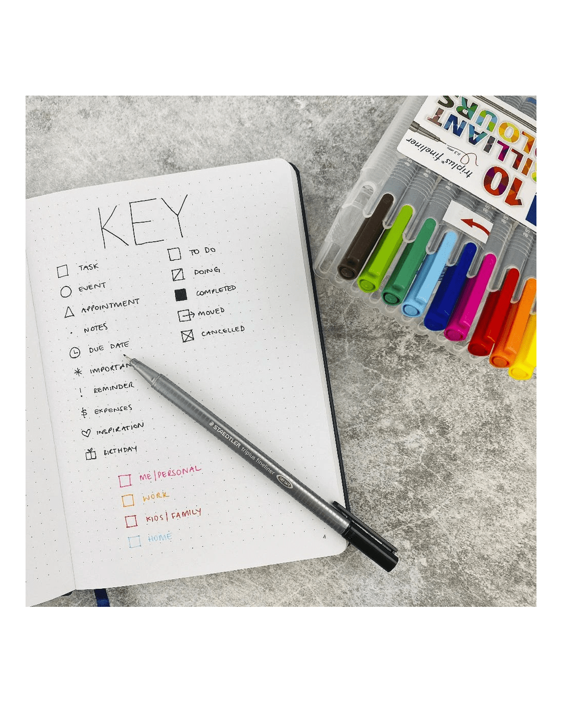 - Each Fineliner has a super fine 0.3 mm tip so they're great for detailed writing and drawing.
