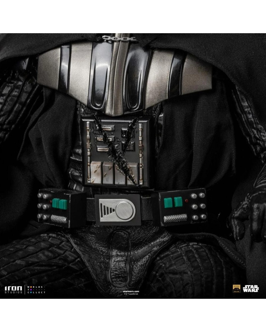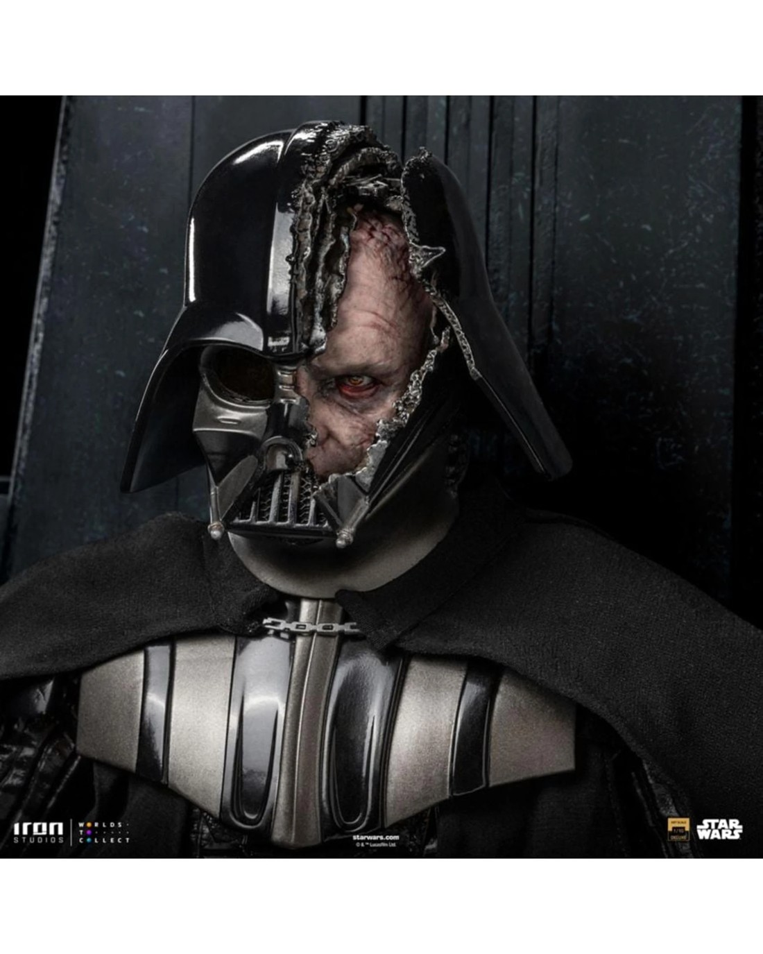 In a fortress on the volcanic world Mustafar, the fearsome Sith Lord settled himself in a sinister and ominous tower. Once built to be a Sith temple above a cave that had a dark side locus, projected by the preserved consciousness of an old Sith lord and artist named Darth Momin, whose haunted mask possessed an imperial lieutenant, the tower has a design that serves as a focus to the powers of the dark side of the Force that boil under the planet's surface of lava and magma. Sitting on his throne that brings elements and design similar to the place, acting as a nexus of the dark powers, Iron Studios proudly present the statue "Darth Vader on Throne - Obi-Wan Kenobi - Art Scale 1/10", the second Iron Studios statue in this scale of the greatest villain in the history of cinema, based on his appearance on the Star Wars spin-off series Obi-Wan Kenobi from the streaming service Disney+.