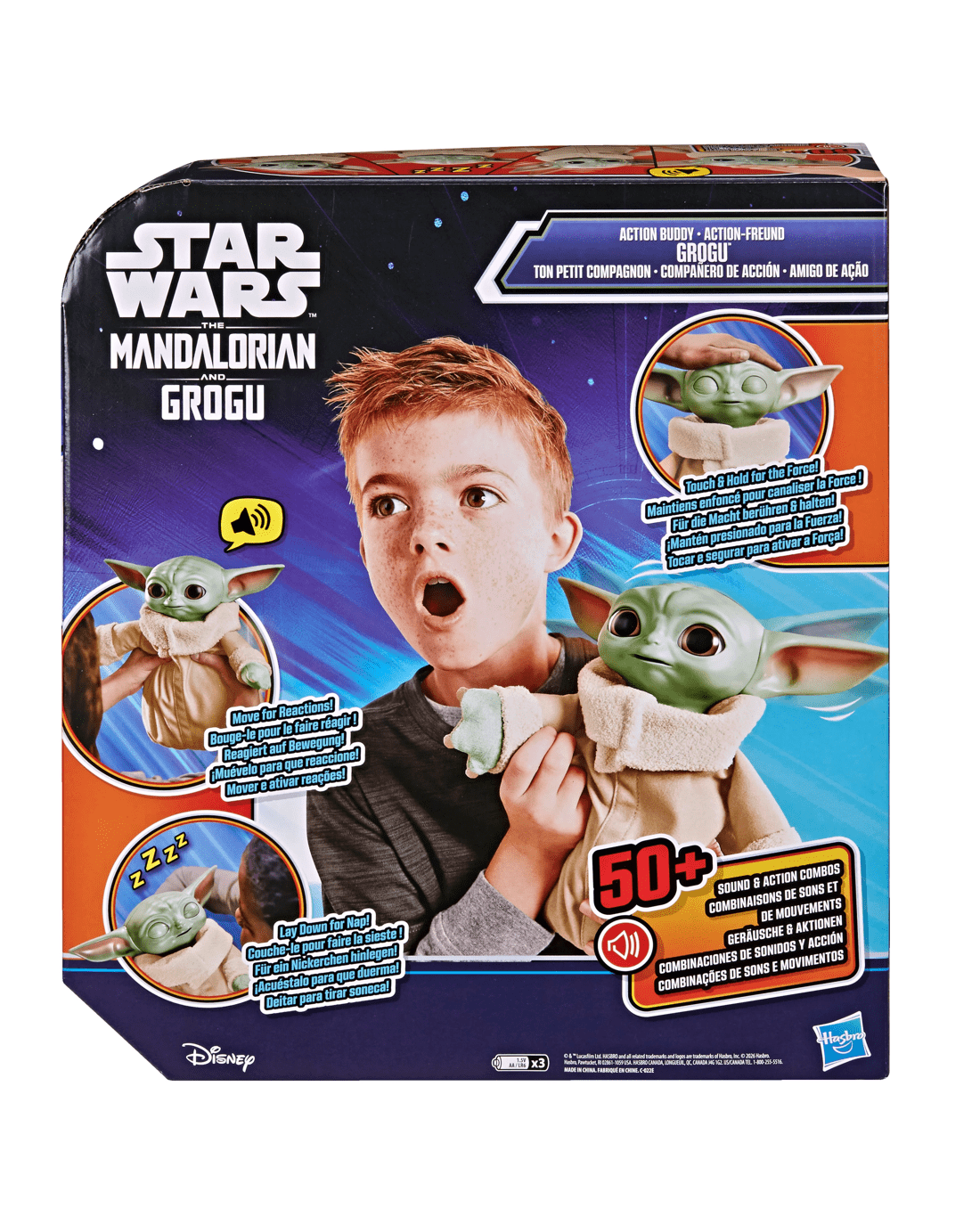 - Sleepy mode: After a long day of adventuring, lay Grogu down and watch as he closes his eyes and makes sleepy snoozing sounds