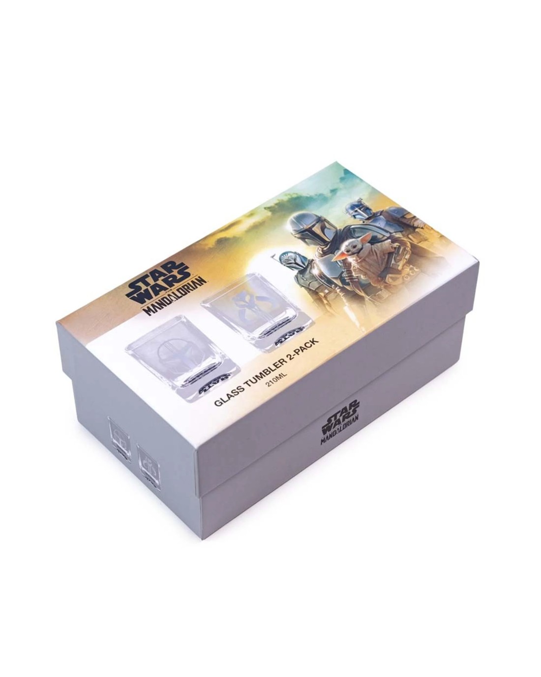 This glass tumbler 2pack brings a refined Mandalorian aesthetic to your everyday moments. Each squareshaped glass features a subtle etched design inspired by iconic sigils, creating a clean and elegant finish that blends perfectly with themed decor or specialoccasion gifting. Each piece offers a practical yet stylish way to enjoy drinks while celebrating one of the saga's most recognisable clans.