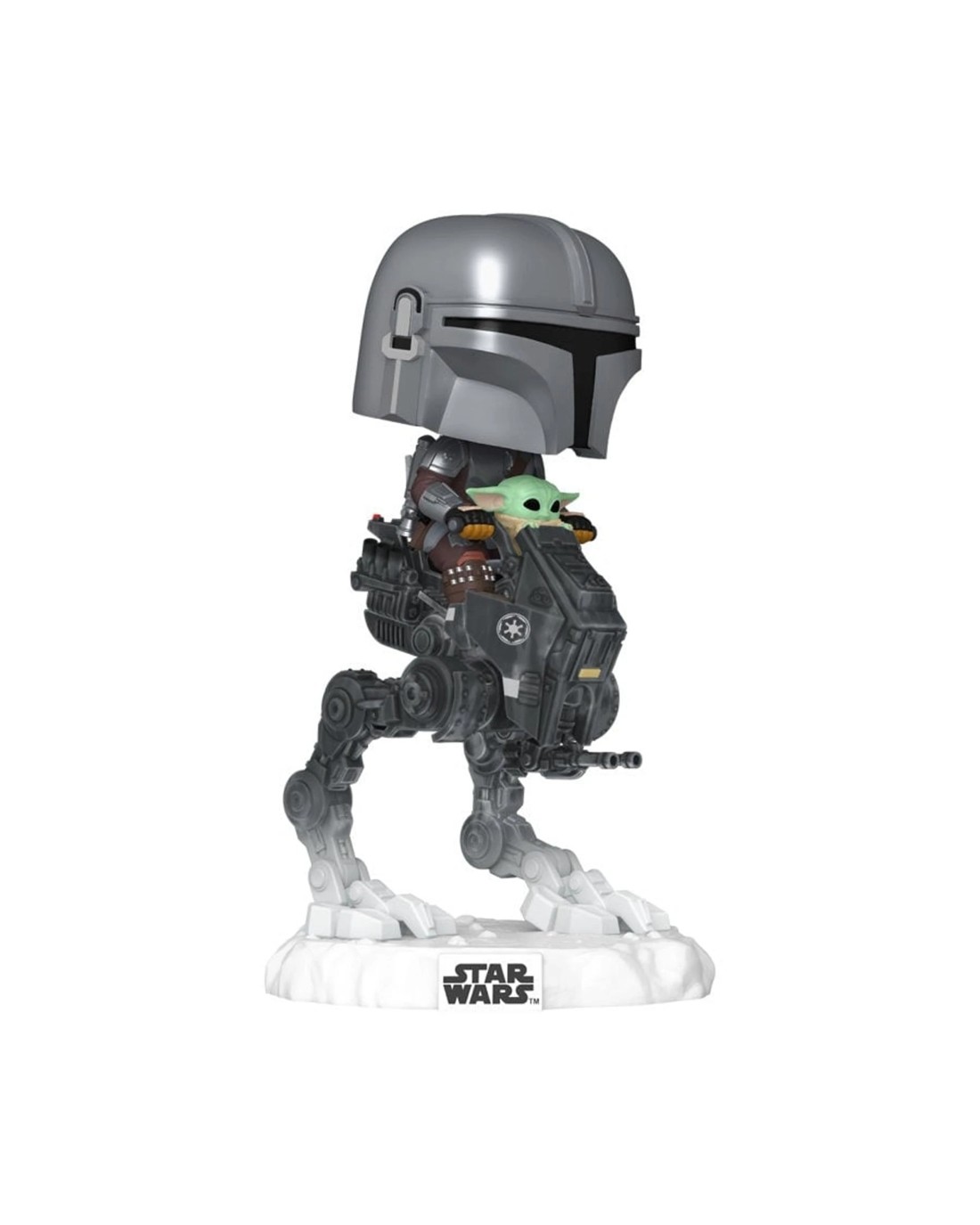 Commemorate the most stellar fandom of all with POP! Rides Deluxe The Mandalorian with Grogu in Imperial Remnant AT-RT! Expand your collection by making this duo the next addition to your Star Wars: The Mandalorian and Grogu lineup. Vinyl bobblehead is approximately 6.9 in (17.5 cm) tall. Ages: 3+
