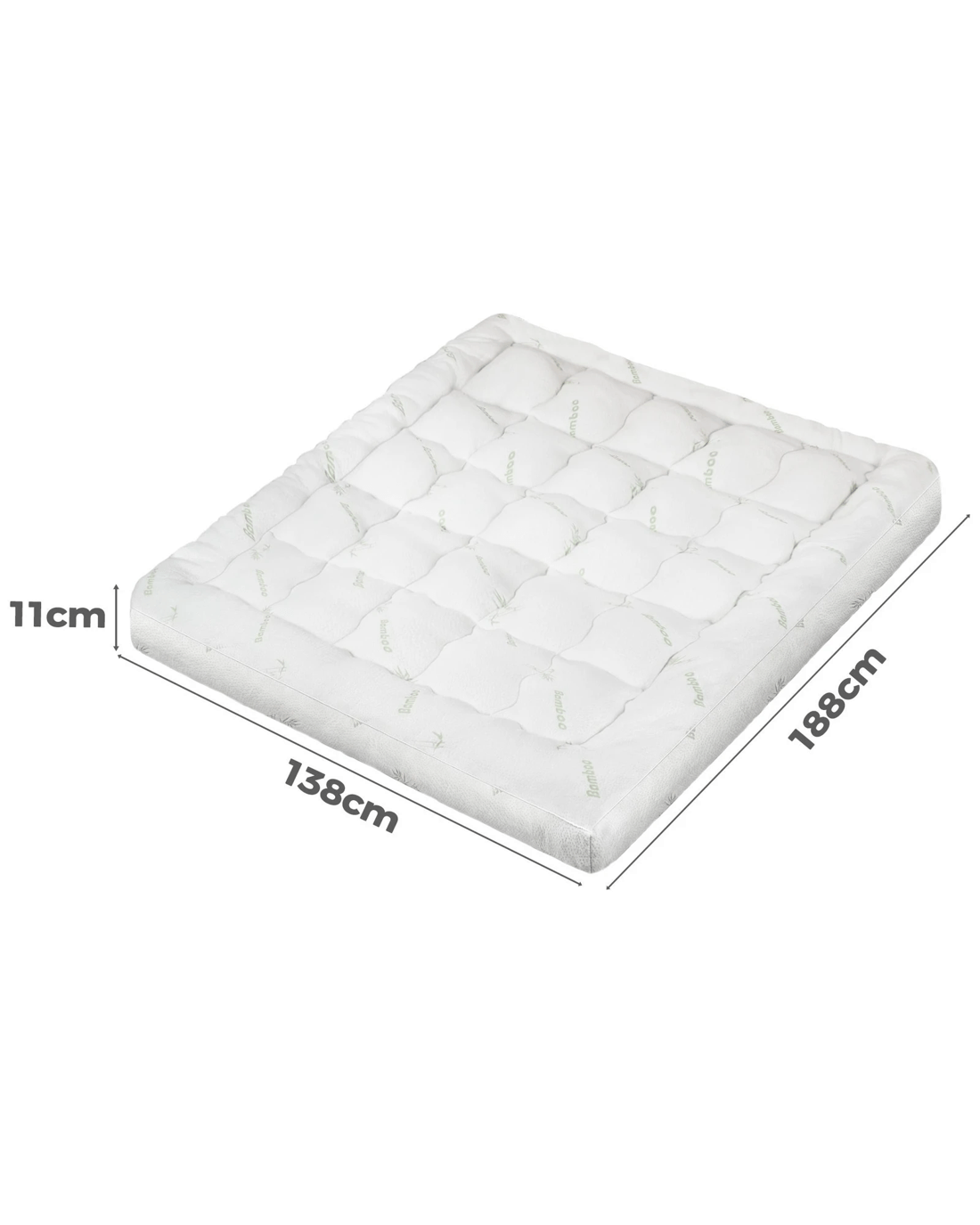 Starry Eucalypt Bamboo Fibre Pillowtop Mattress Topper Underlay Pad 11cm - Double Size