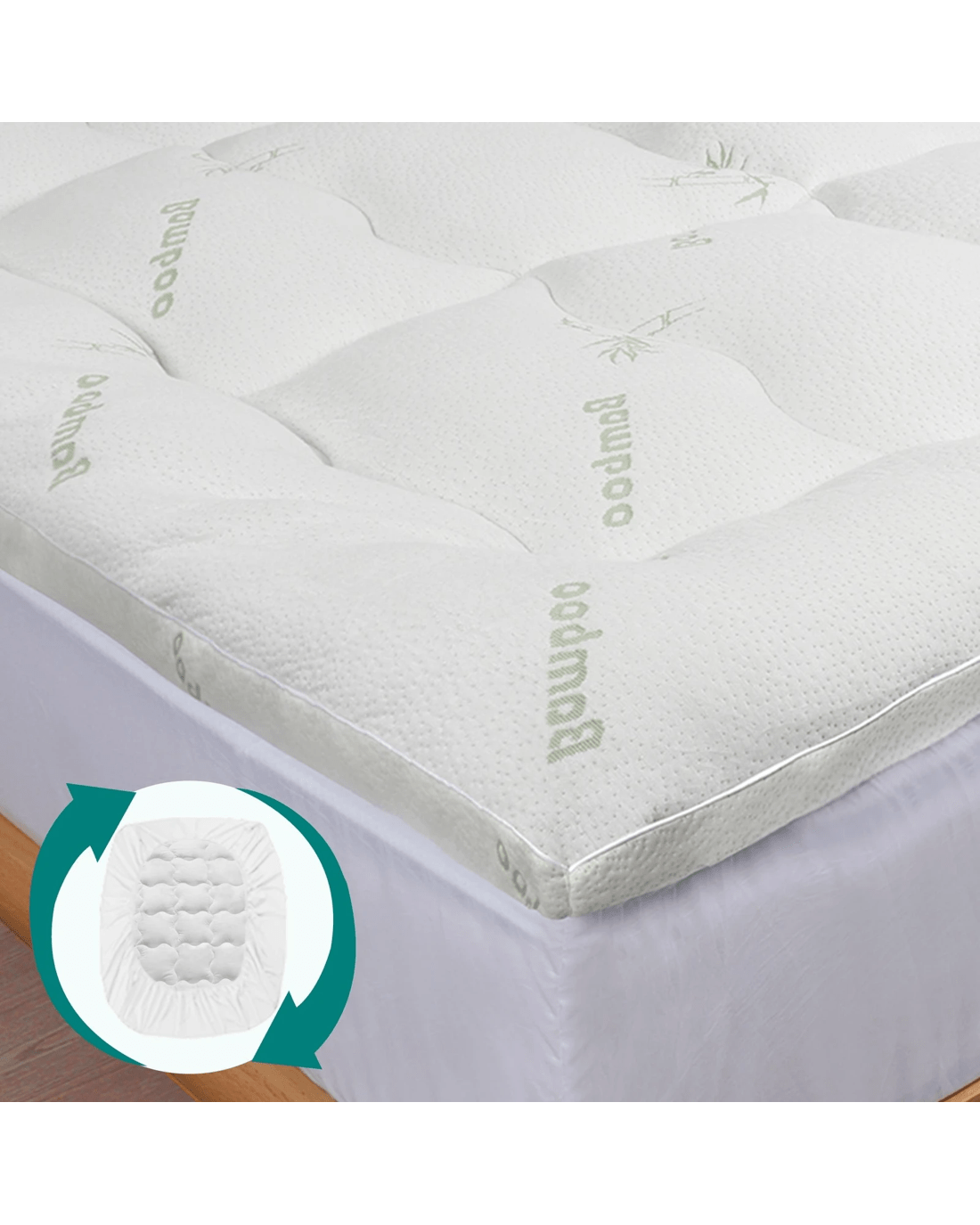 Our mattress topper is filled with eco-friendly bamboo microfibre filling and brings comfort without odours and allergens. Plus, the naturally breathable and moisture-wicking cover is hypoallergenic. It's easy to enhance your comfort or upgrade the experience of an old mattress with our topper. The 45cm fitted skirt keeps the topper firmly in place and smoothly attached to your mattress despite tossing and turning through the night, decreasing tangled mess in the morning.