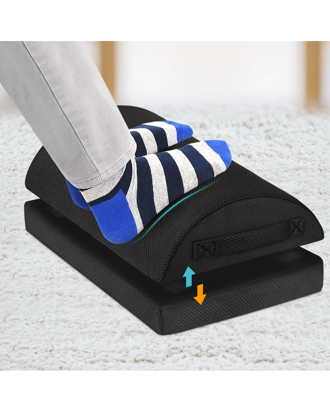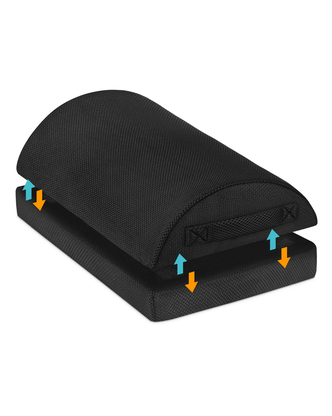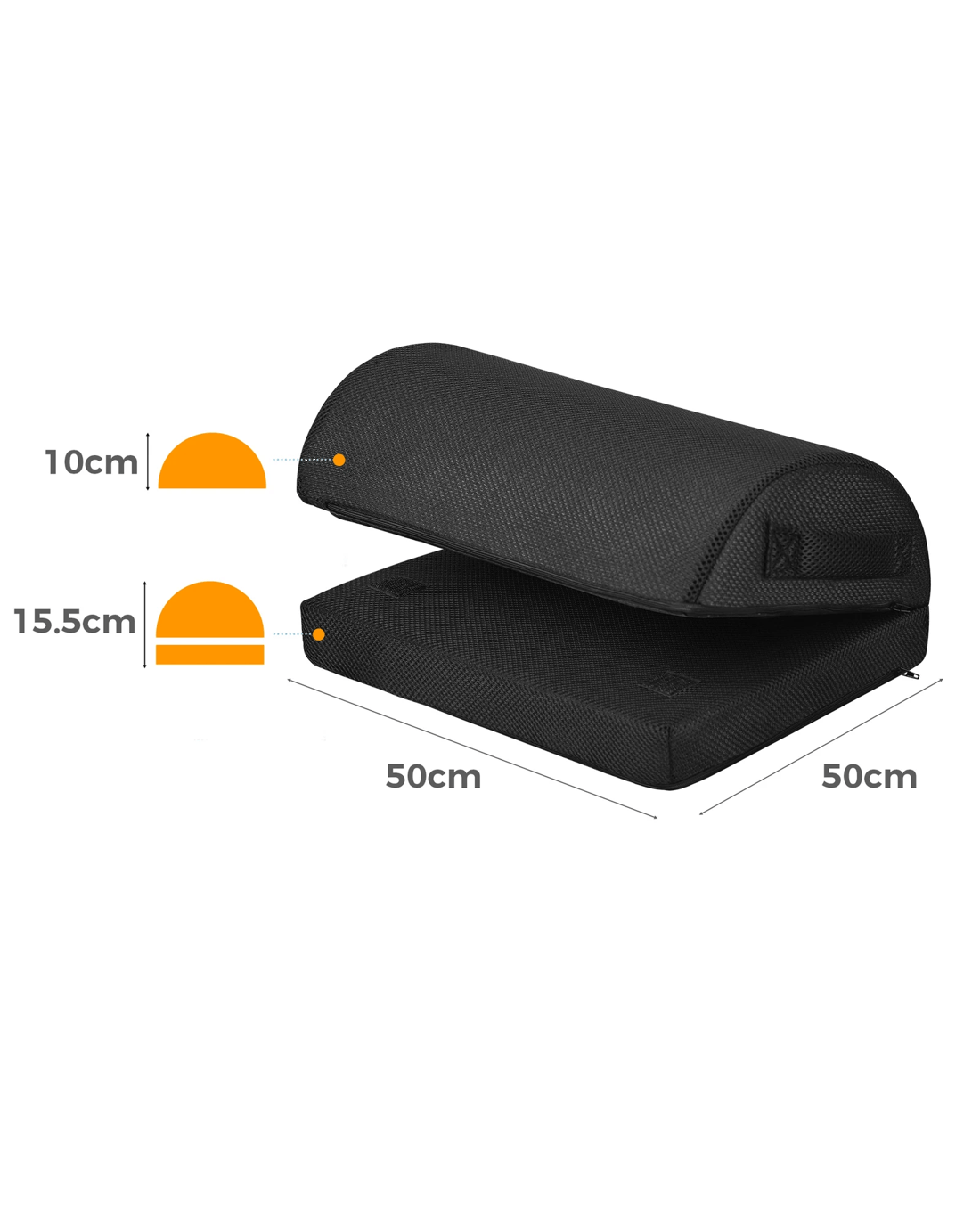Made of high-density sponge foam in a semicircle shape, this footrest pillow provides great support for ultimate comfort. Combined with a rectangular-form pad, the height of this pillow can be adjusted. And the pillow and pad come with removable and machine-washable covers.