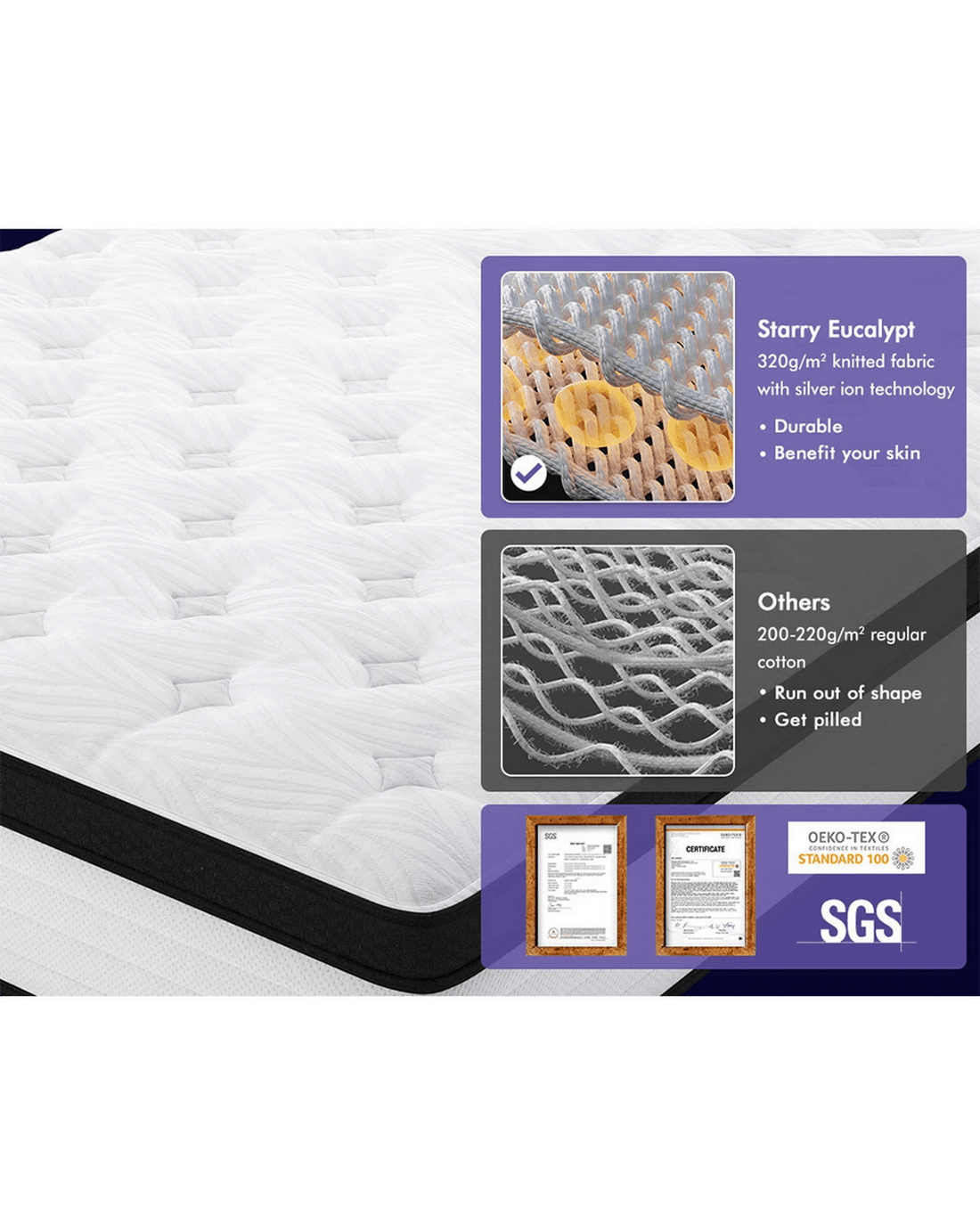 Having 30-year manufacturing experience in this industry, Starry EUCALYPT ombines the materials and innovative technology to create this improved euro top mattress. We've got your back. Upgrade your old mattress today to luxury enjoyment.