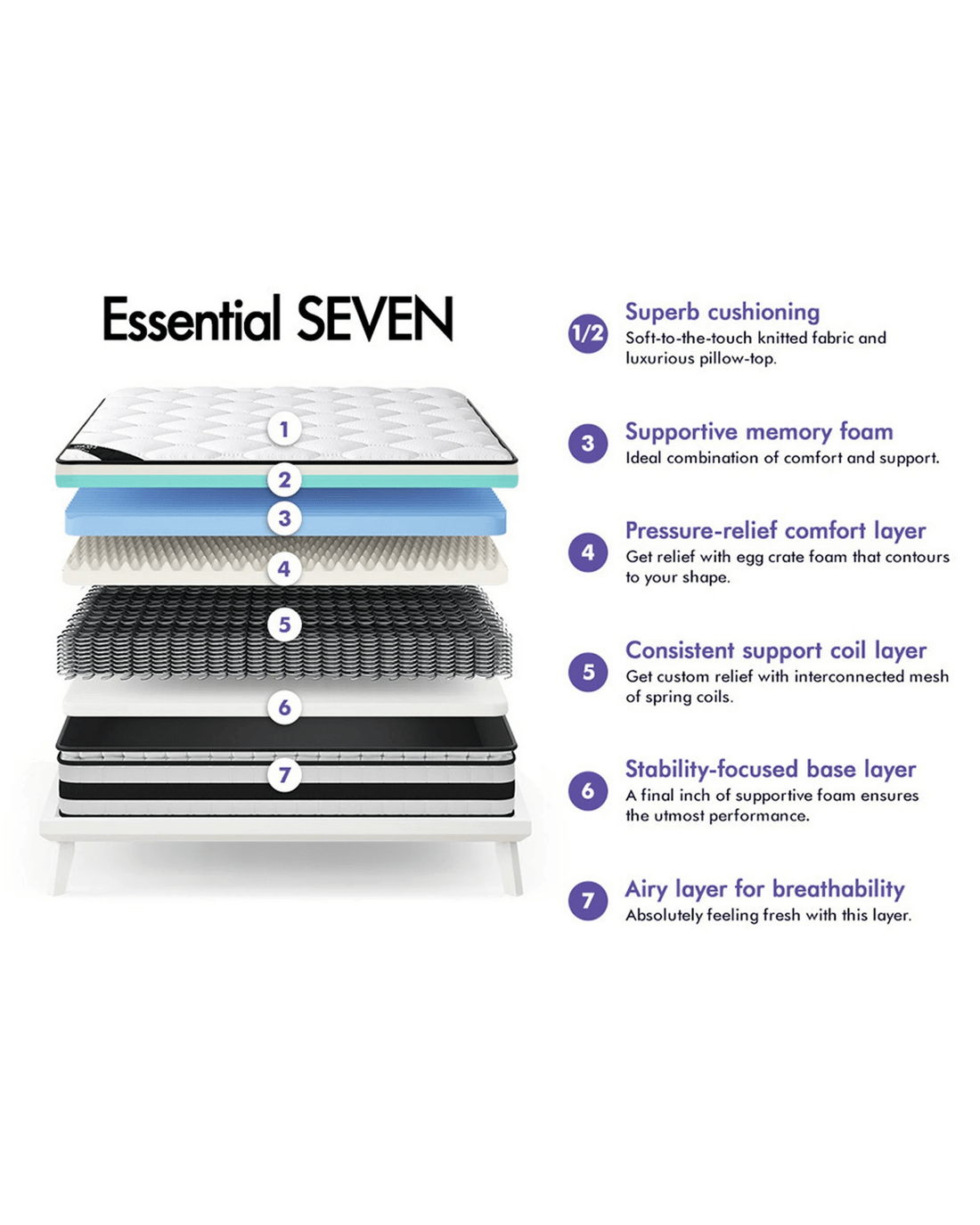 * Supportive memory foam, ensures everything above it performs at its