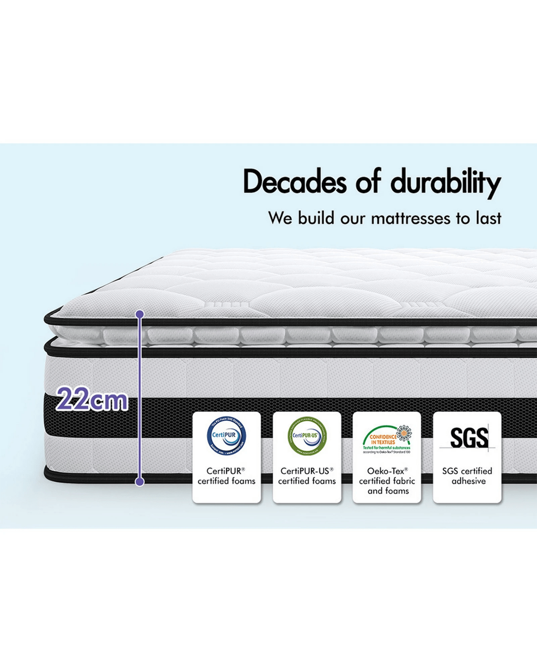 * 22cm thick pillow-top mattress