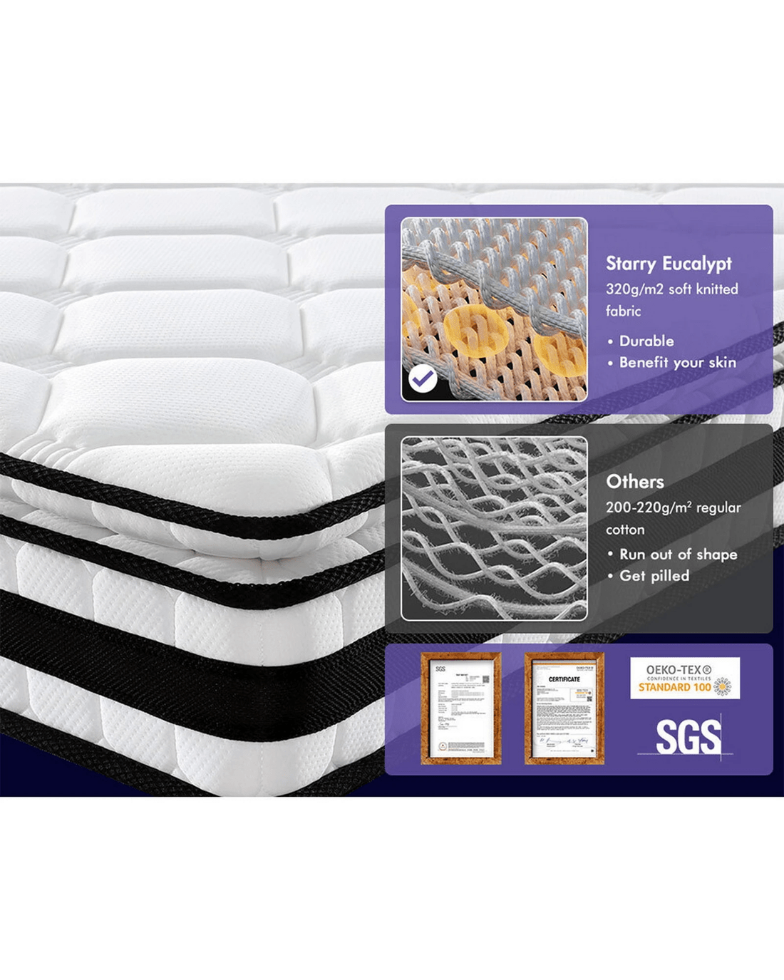 Having 30-year manufacturing experience in this industry, Starry EUCALYPT ombines the materials and innovative technology to create this improved pillow-top mattress. Weve got your back. Upgrade your old mattress today to luxury enjoyment.