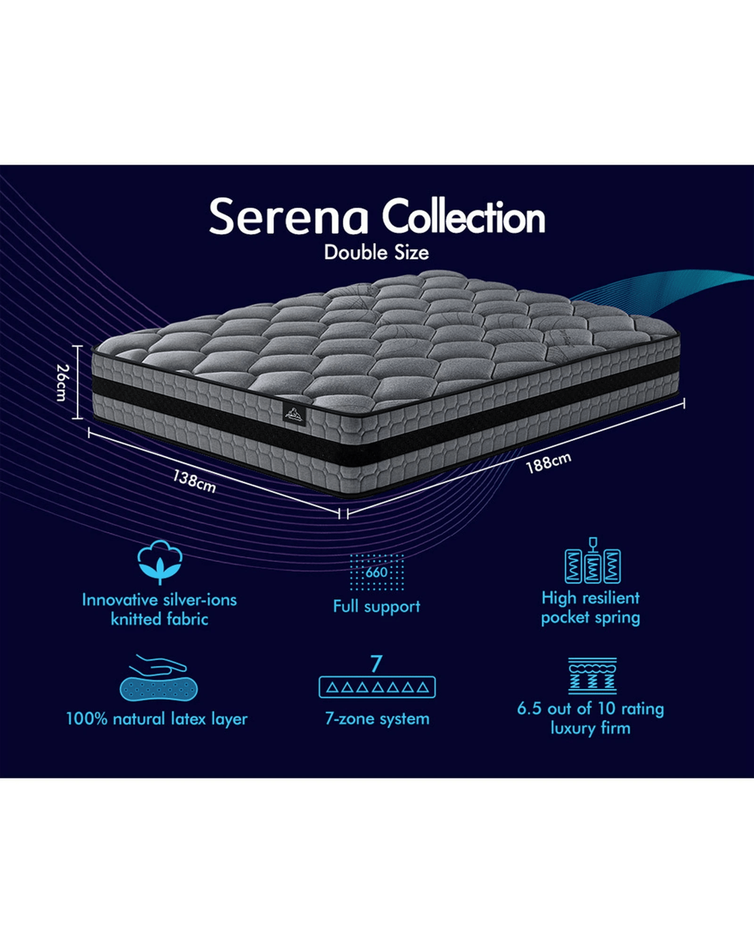 Sold by Aussie Union GroupStarry Eucalypt Mattress Pocket Spring 3D Mesh Fabric 26cm 7 zone - Double Bed