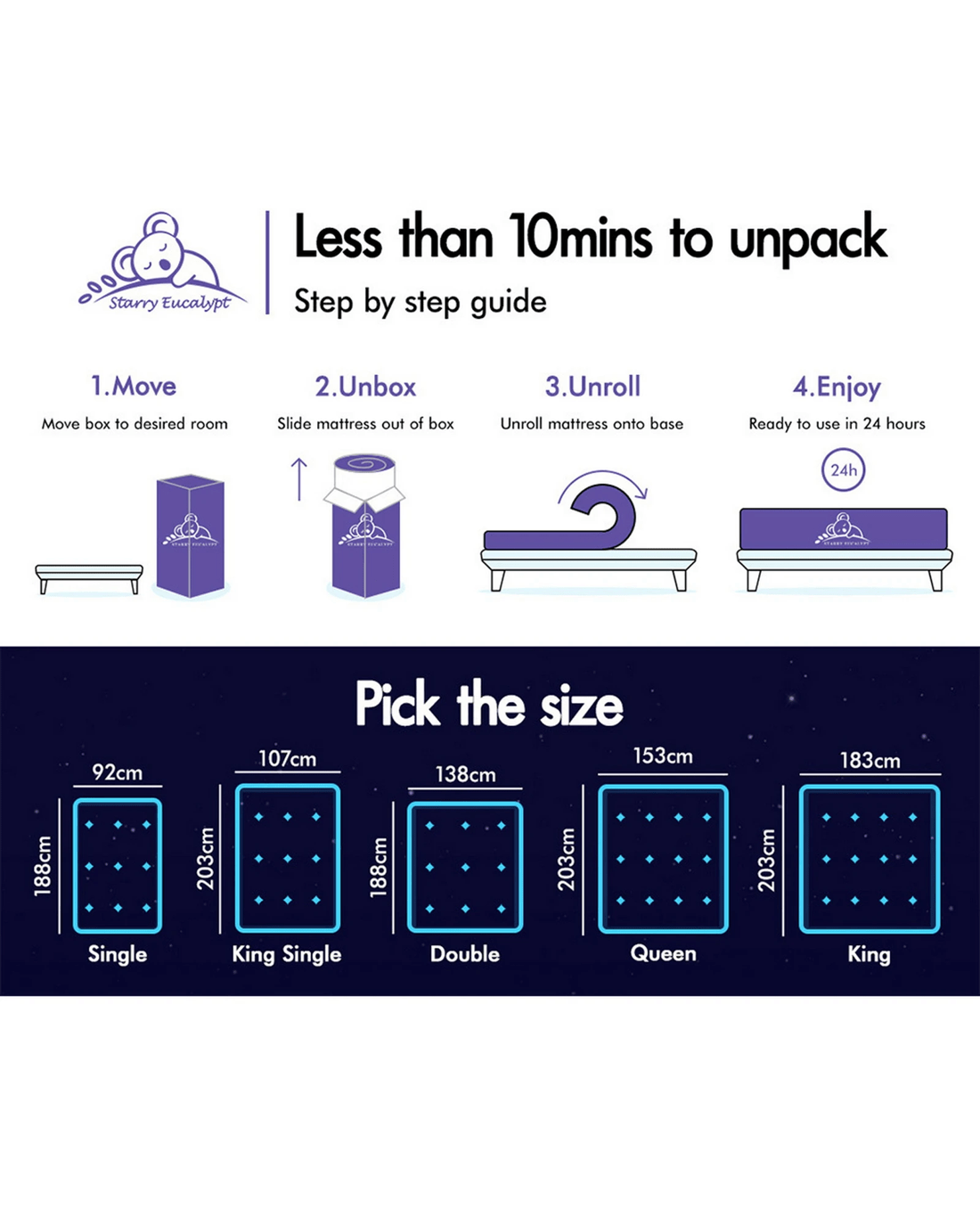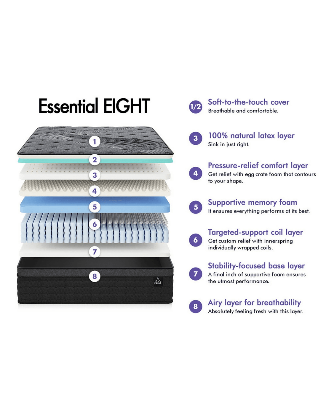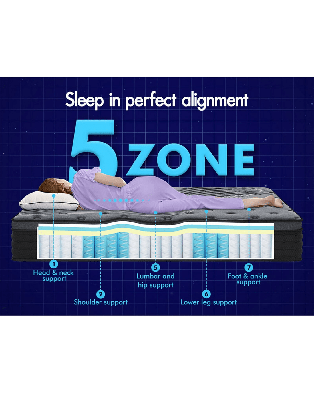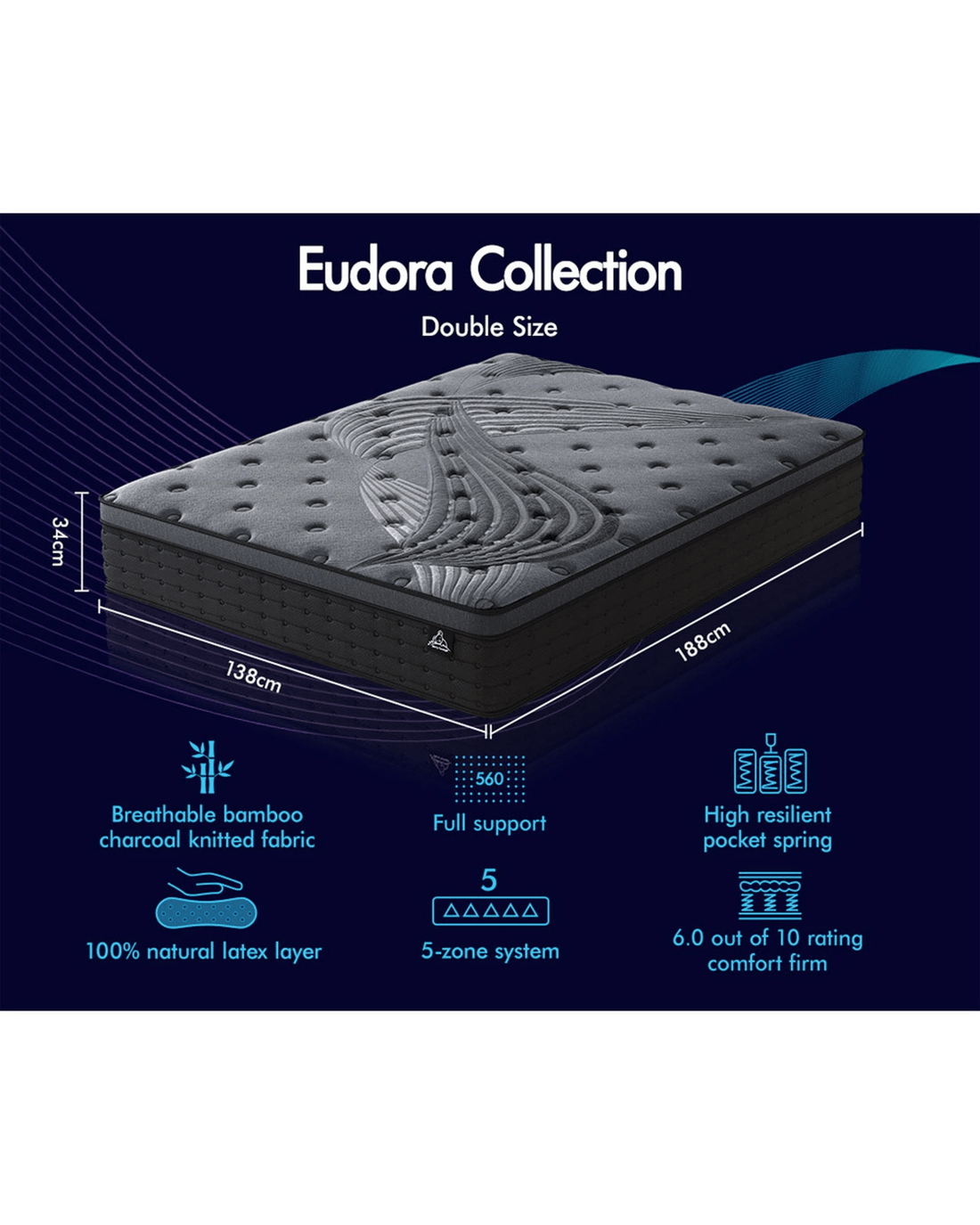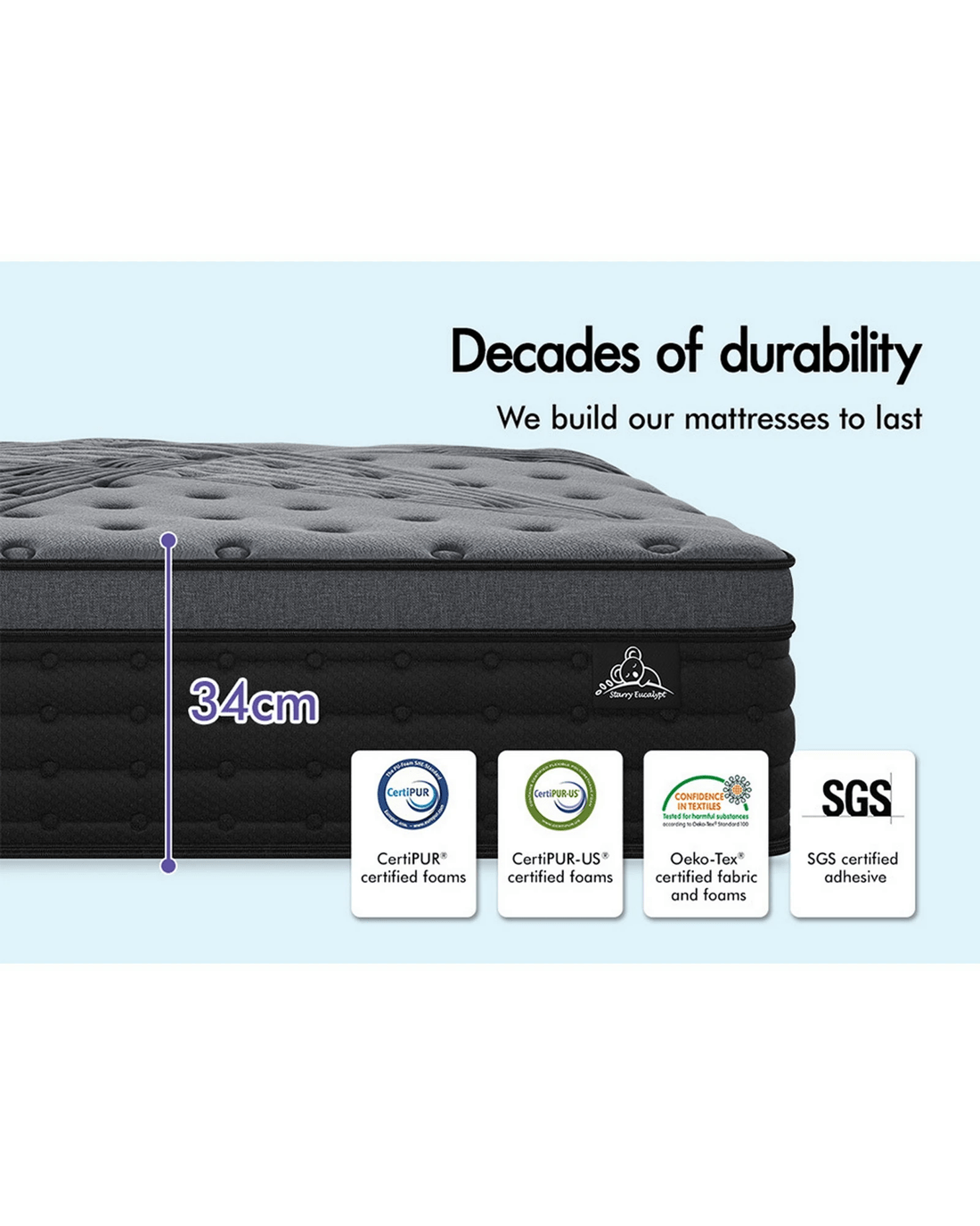 Sold by Aussie Union GroupStarry Eucalypt Mattress Pocket Spring Latex Euro Top 34cm 5 zone - Double Bed