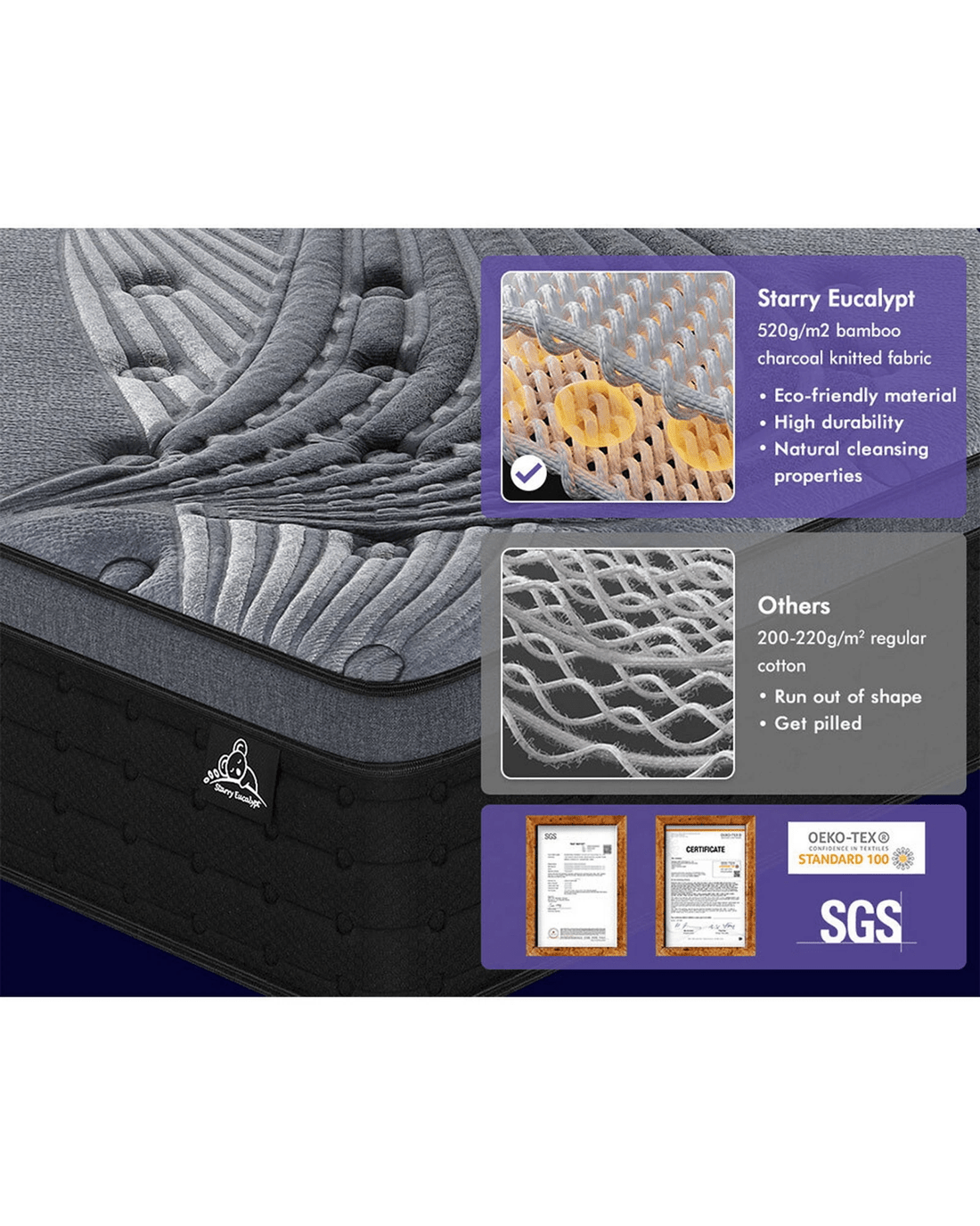 Starry Eucalypt Mattress Pocket Spring Latex Euro Top 34cm 5 zone - Queen Bed