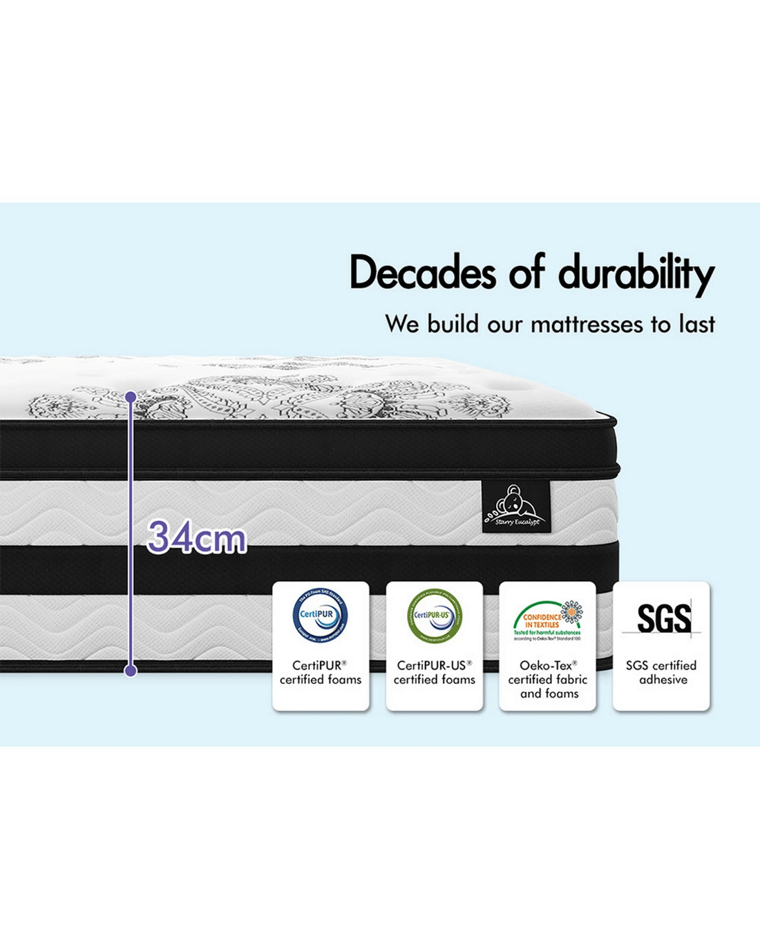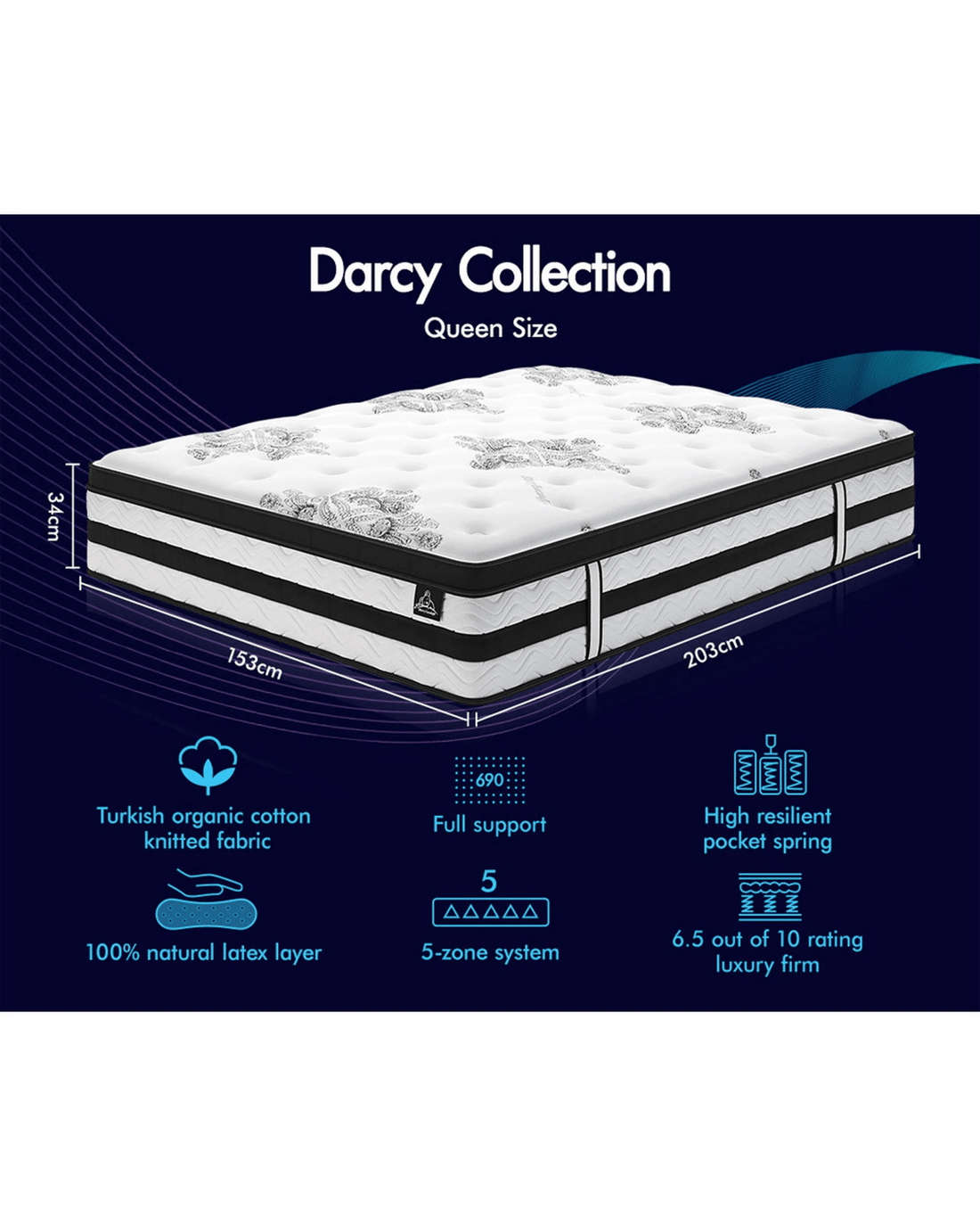 Sold by Aussie Union GroupStarry Eucalypt Mattress Pocket Spring Latex Euro Top 34cm 5 zone - Queen Bed