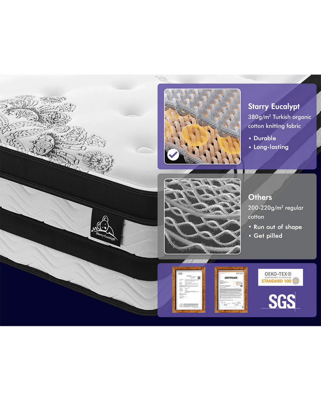 Sold by Aussie Union GroupStarry Eucalypt Mattress Pocket Spring Latex Euro Top 34cm 5 zone - Single Bed