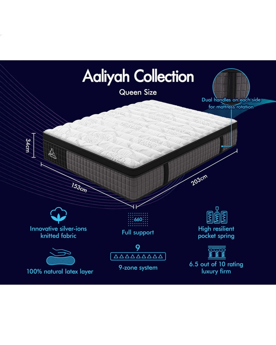 Starry Eucalypt Mattress Pocket Spring Latex Euro Top 34cm Aaliyah - Queen Bed