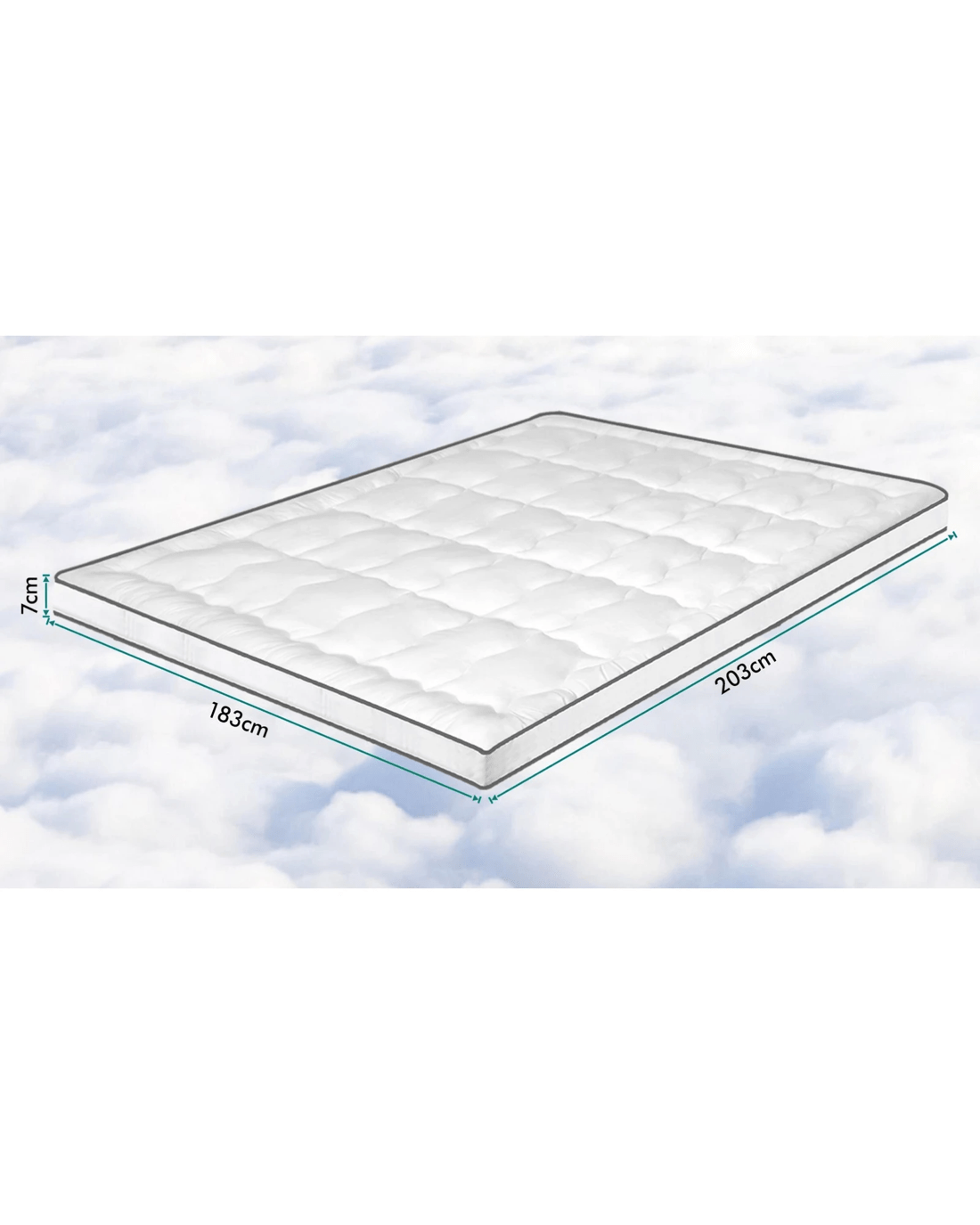 * Dimensions: 203x183x7cm + 45cm fitted skirt