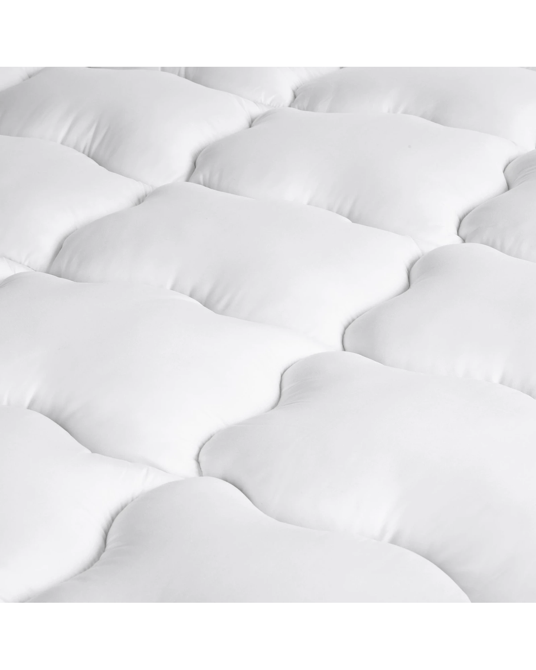 Filled with eco-friendly microfibre, our mattress topper offers comfort without odours and allergens. Plus, the naturally breathable and moisture-wicking cover is hypoallergenic. With our topper, you can enhance your comfort or prolong the life of an older mattress. The thick elastic bands are positioned on each corner to attach the topper to your mattress securely. Unlike the skirt system, the elastic band makes the transformation more flexible.
