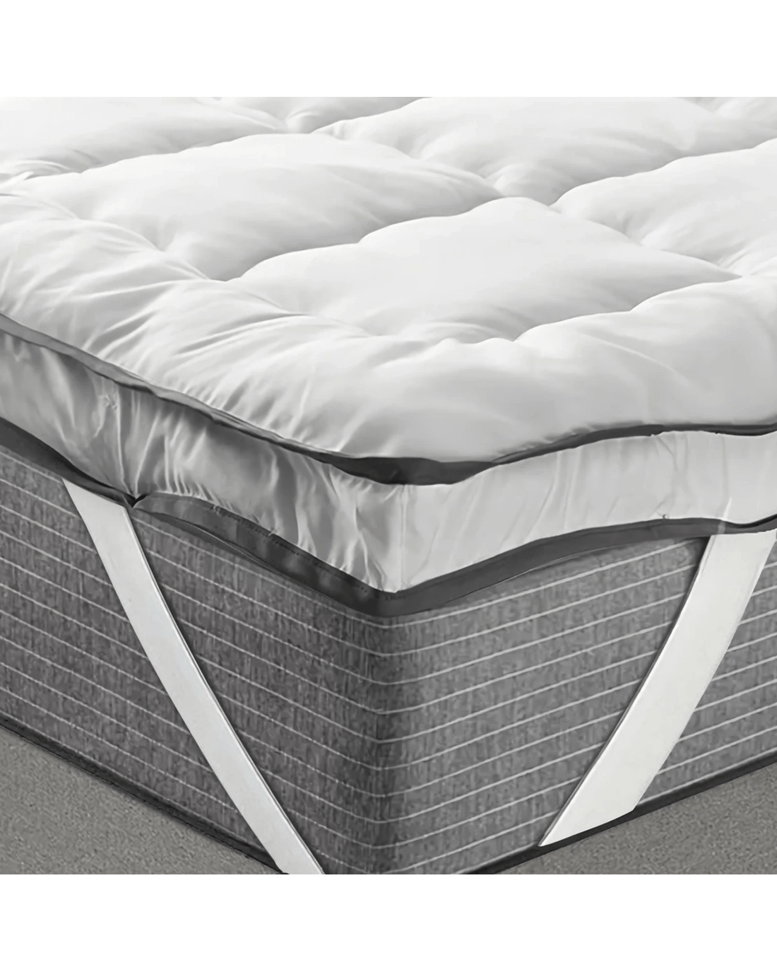Filled with eco-friendly microfibre, our mattress topper offers comfort without odours and allergens. Plus, the naturally breathable and moisture-wicking cover is hypoallergenic. With our topper, you can enhance your comfort or prolong the life of an older mattress. The thick elastic bands are positioned on each corner to attach the topper to your mattress securely. Unlike the skirt system, the elastic band makes the transformation more flexible.