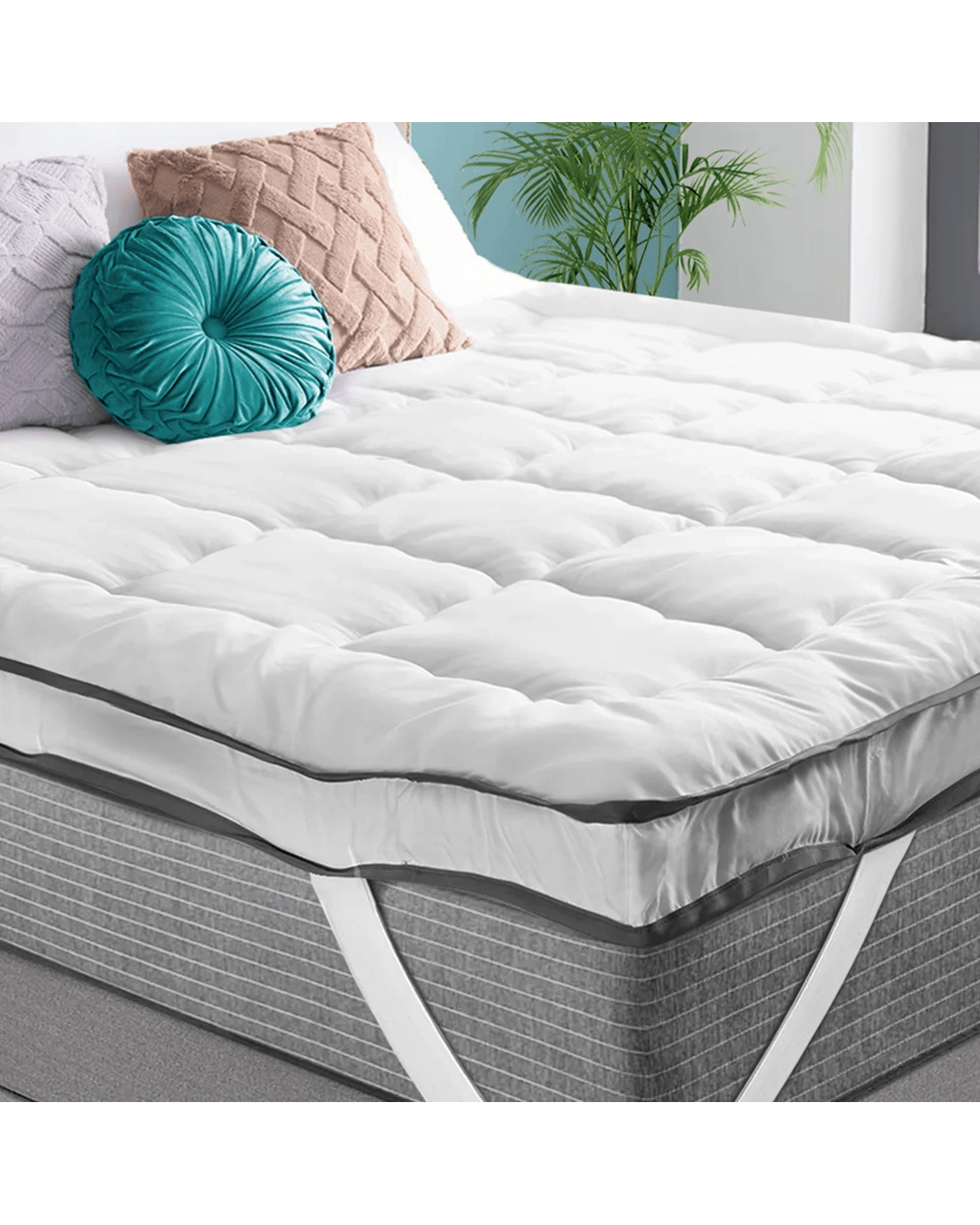 Filled with eco-friendly microfibre, our mattress topper offers comfort without odours and allergens. Plus, the naturally breathable and moisture-wicking cover is hypoallergenic. With our topper, you can enhance your comfort or prolong the life of an older mattress. The thick elastic bands are positioned on each corner to attach the topper to your mattress securely. Unlike the skirt system, the elastic band makes the transformation more flexible.