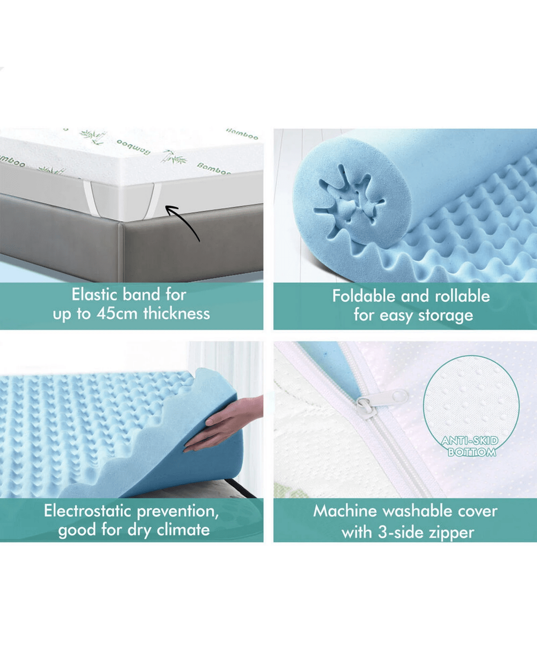 Luxurious Bamboo Fabric Cover - The topper is encased in a luxurious bamboo fabric cover, which adds an extra layer of comfort and style to your sleeping experience.
