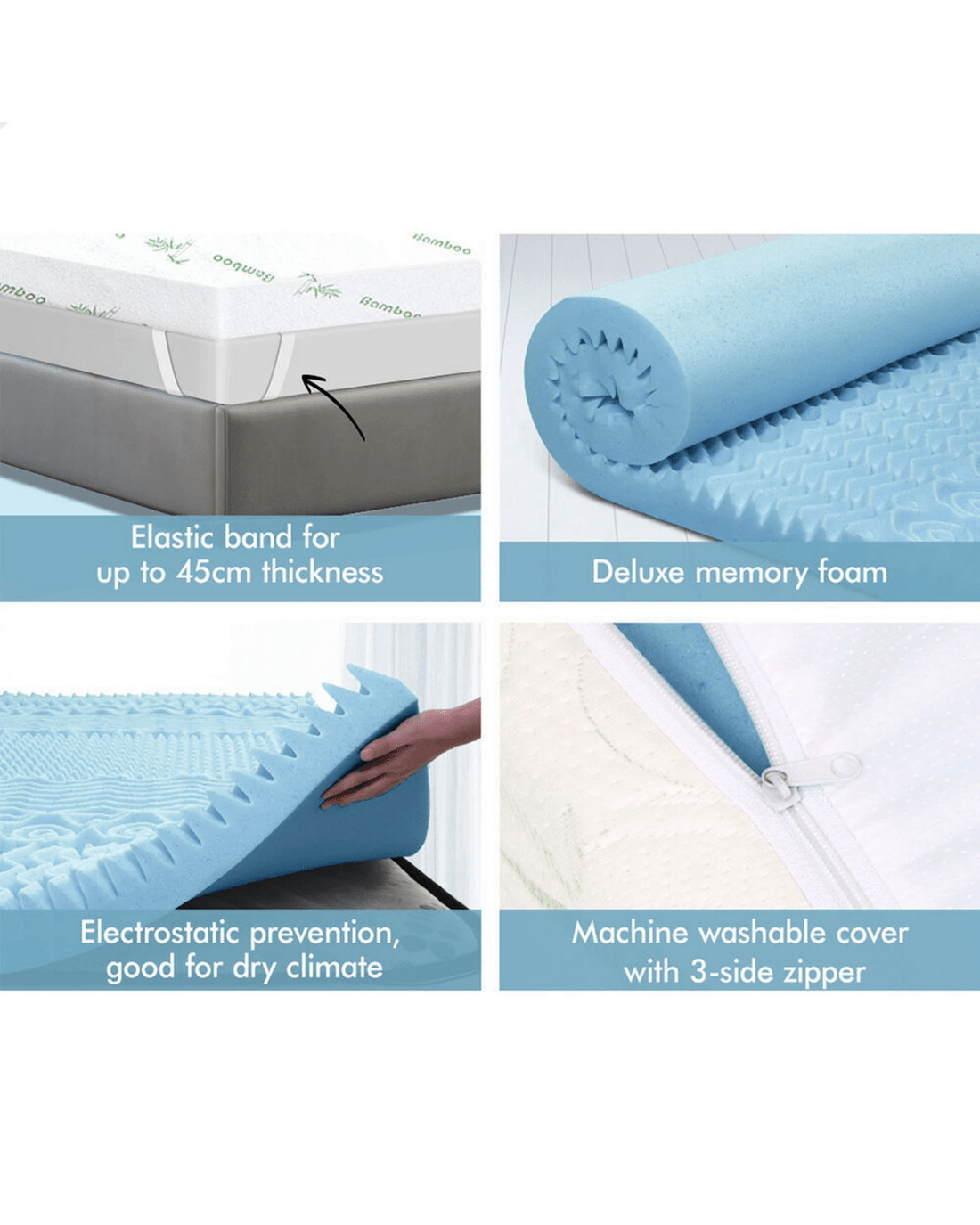 Luxurious Bamboo Fabric Cover - The topper is encased in a luxurious bamboo fabric cover, which adds an extra layer of comfort and style to your sleeping experience.