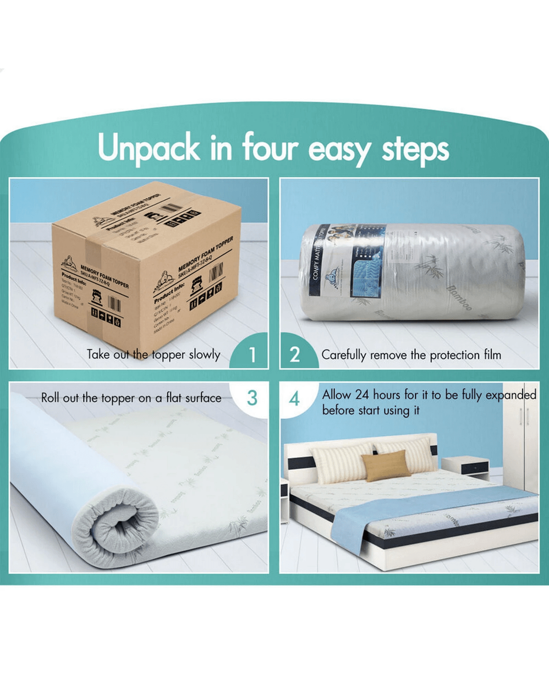Luxurious Bamboo Fabric Cover - The topper is encased in a luxurious bamboo fabric cover, which adds an extra layer of comfort and style to your sleeping experience.