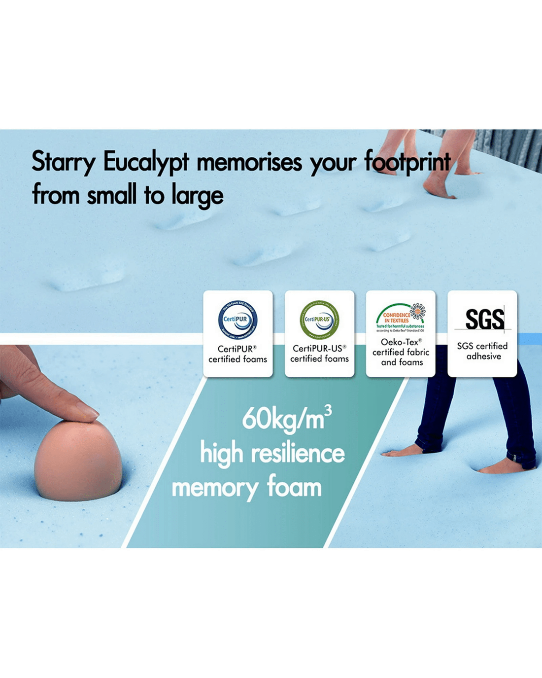 Starry Eucalypt Memory Foam Mattress Topper 8cm Airflow - King Single Bed