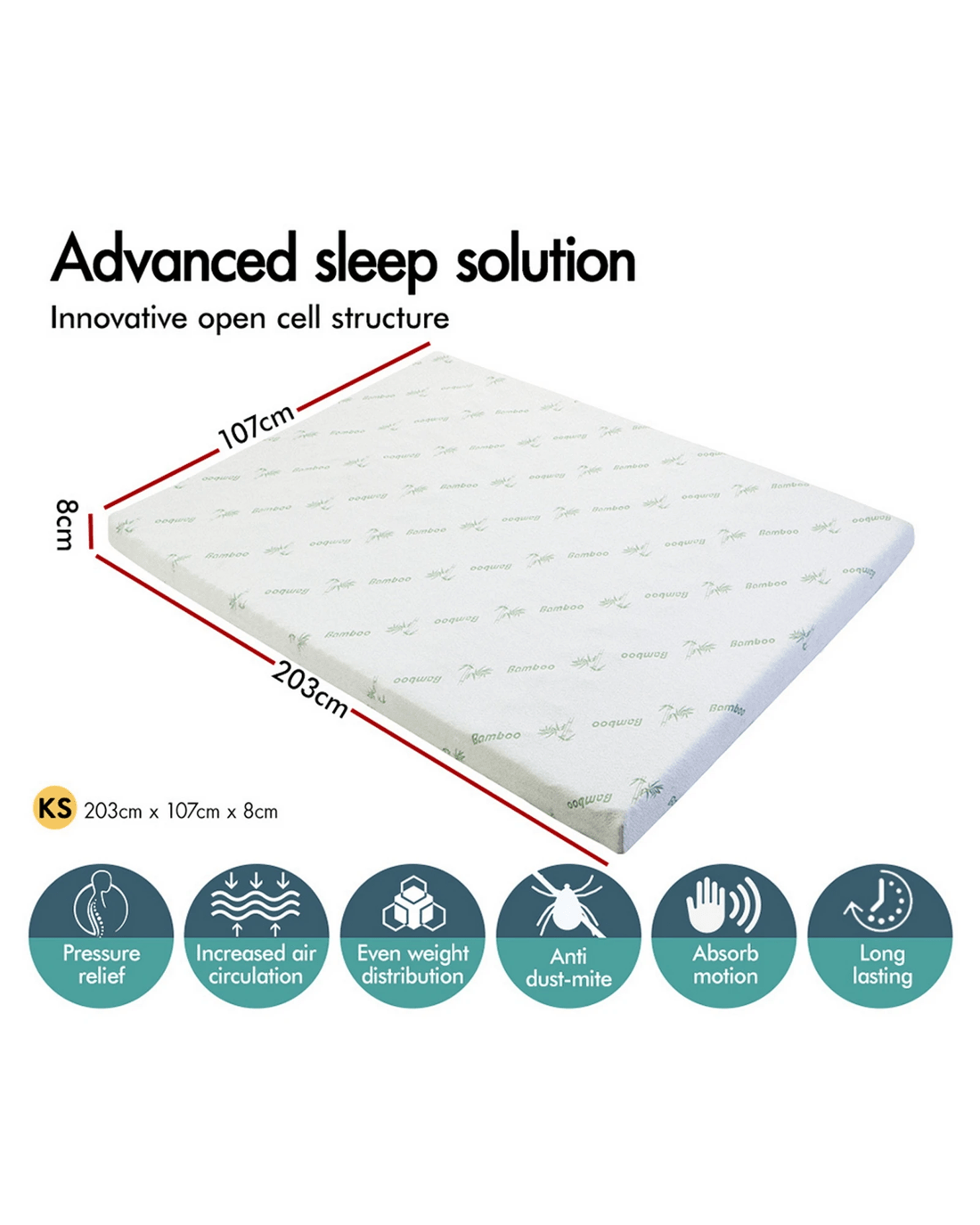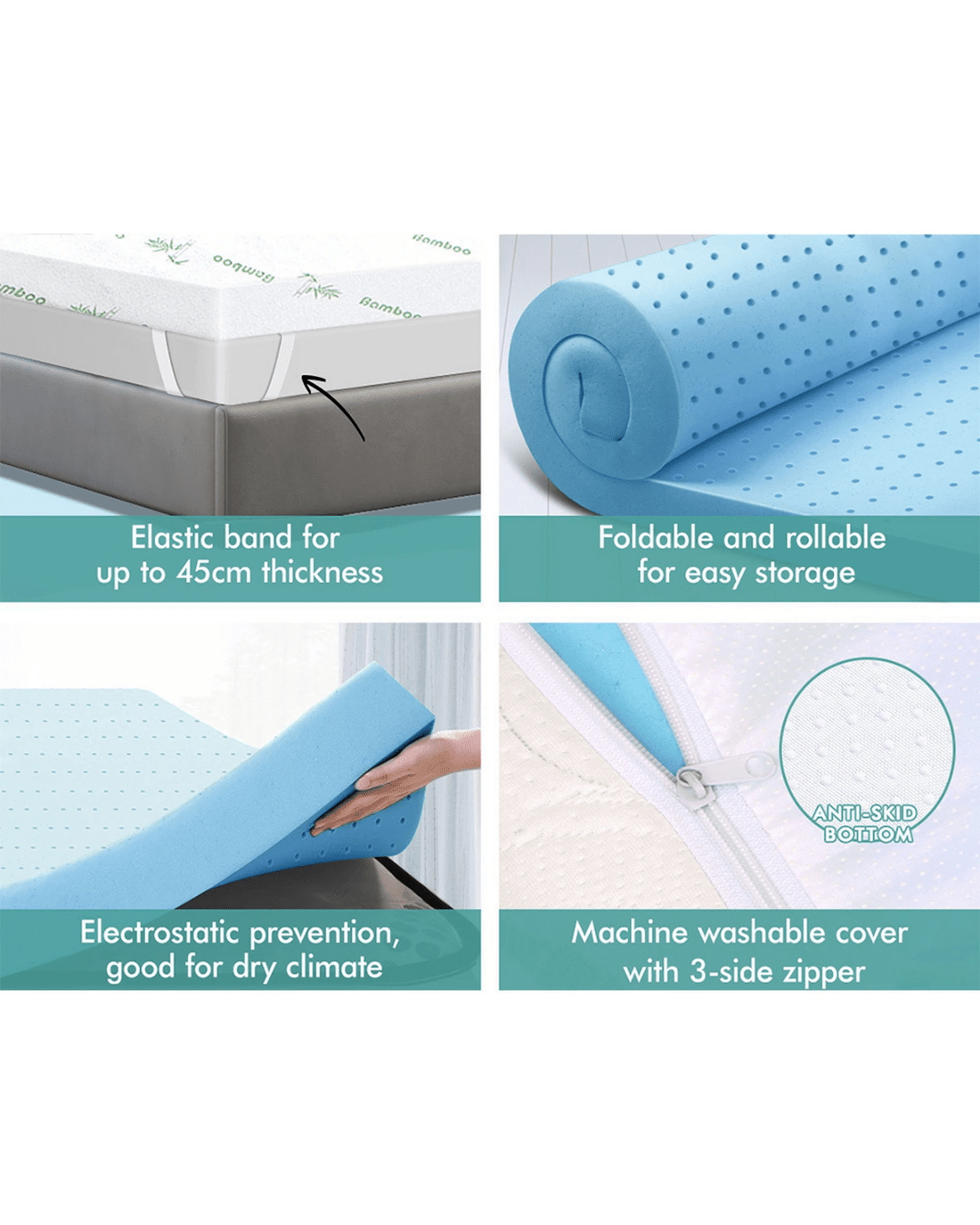 Sold by Aussie Union GroupStarry Eucalypt Memory Foam Mattress Topper 8cm Ventilated Cool Gel - King Single Bed