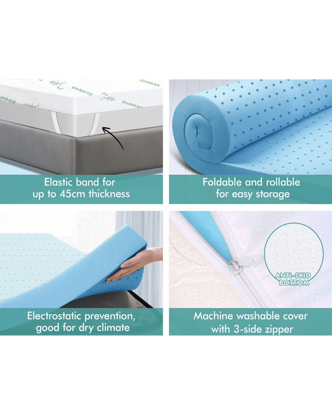 Luxurious Bamboo Fabric Cover - The topper is encased in a luxurious bamboo fabric cover, which adds an extra layer of comfort and style to your sleeping experience.
