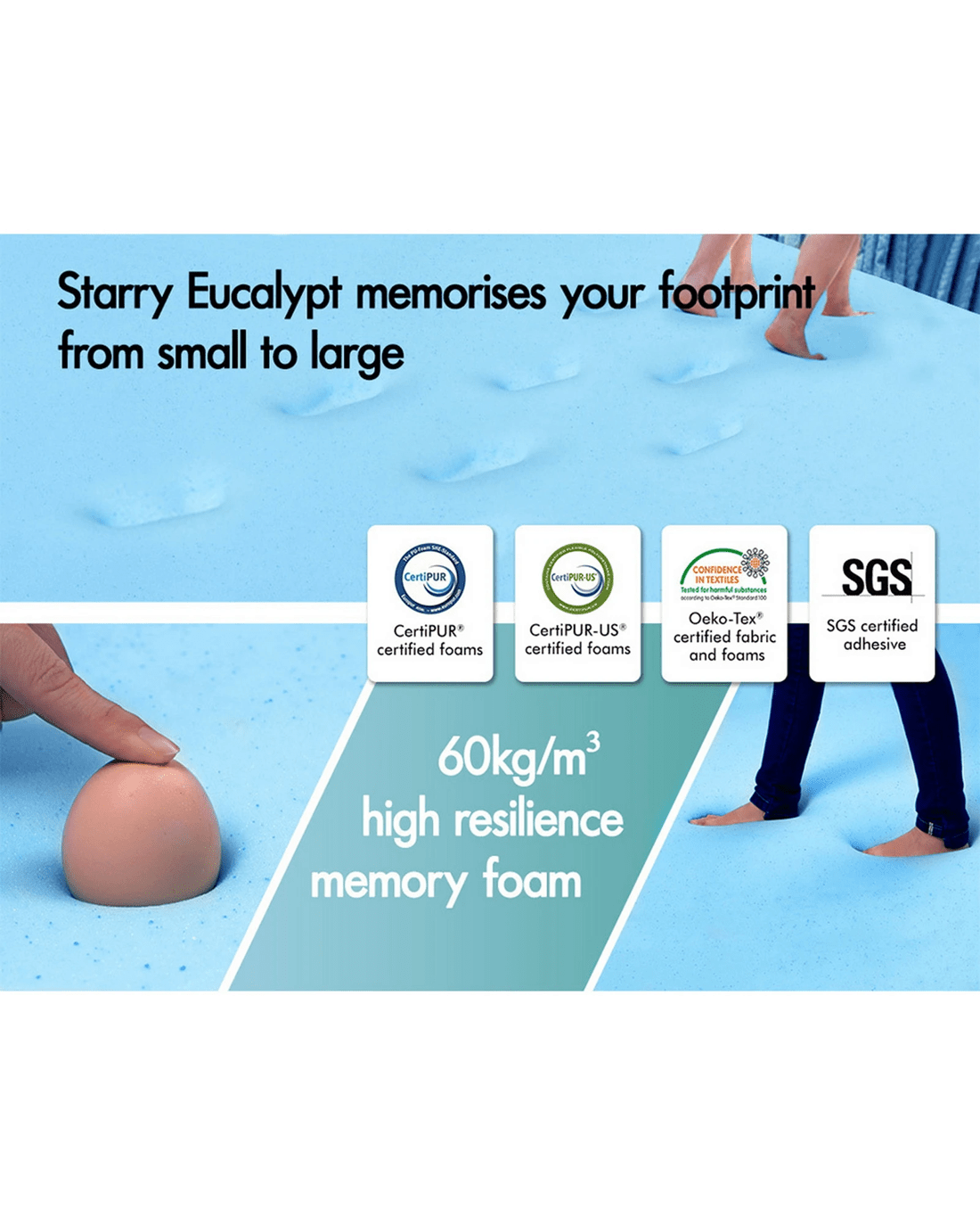 Starry Eucalypt Memory Foam Mattress Topper Ventilated Gel Bamboo 8cm