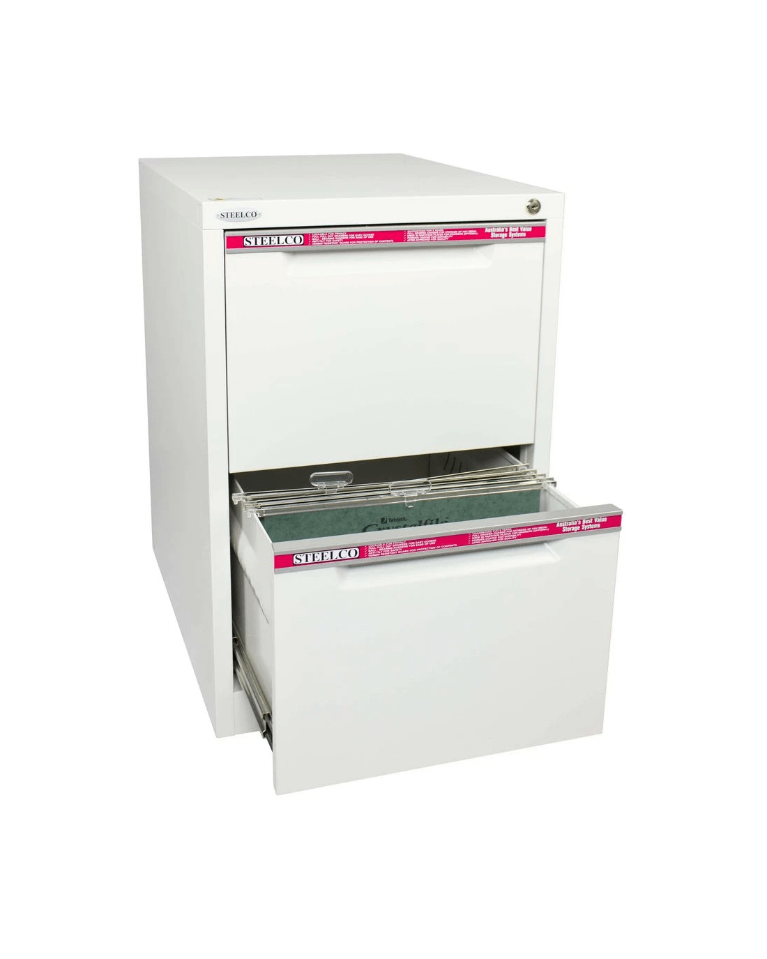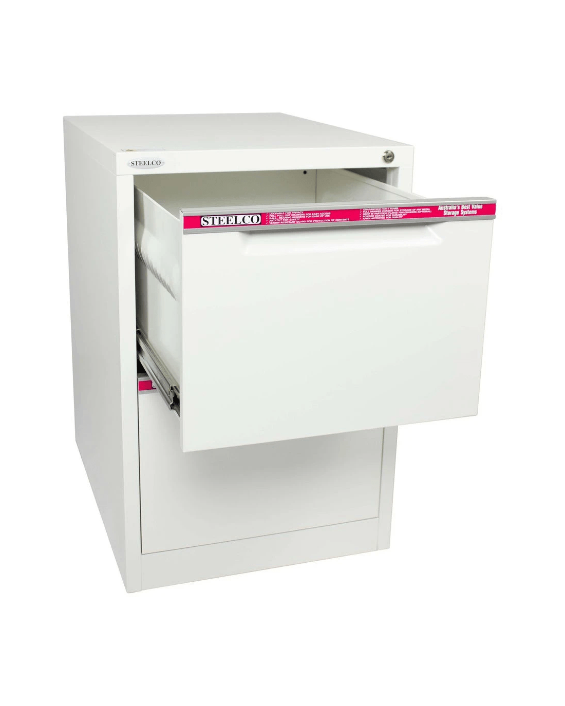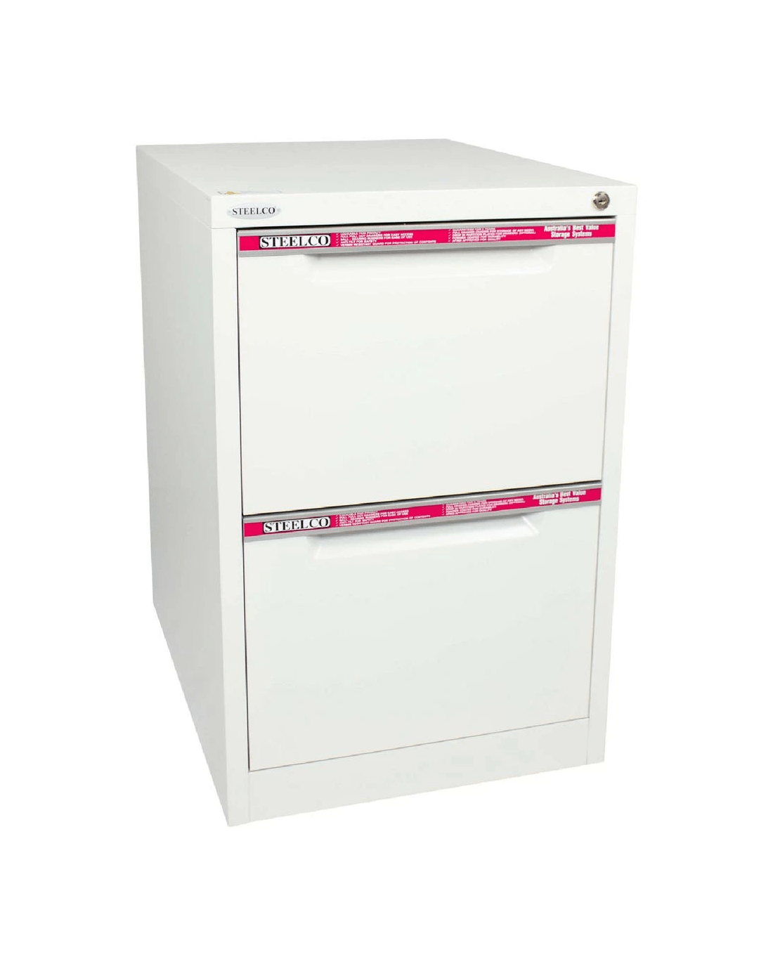 The Steelco 2 Drawer Filing Cabinet is perfect for use in the office or home office to file your important documents. The drawers come with full length label holders for easy identification and each drawer has double extension ball bearing runners for full drawer access.