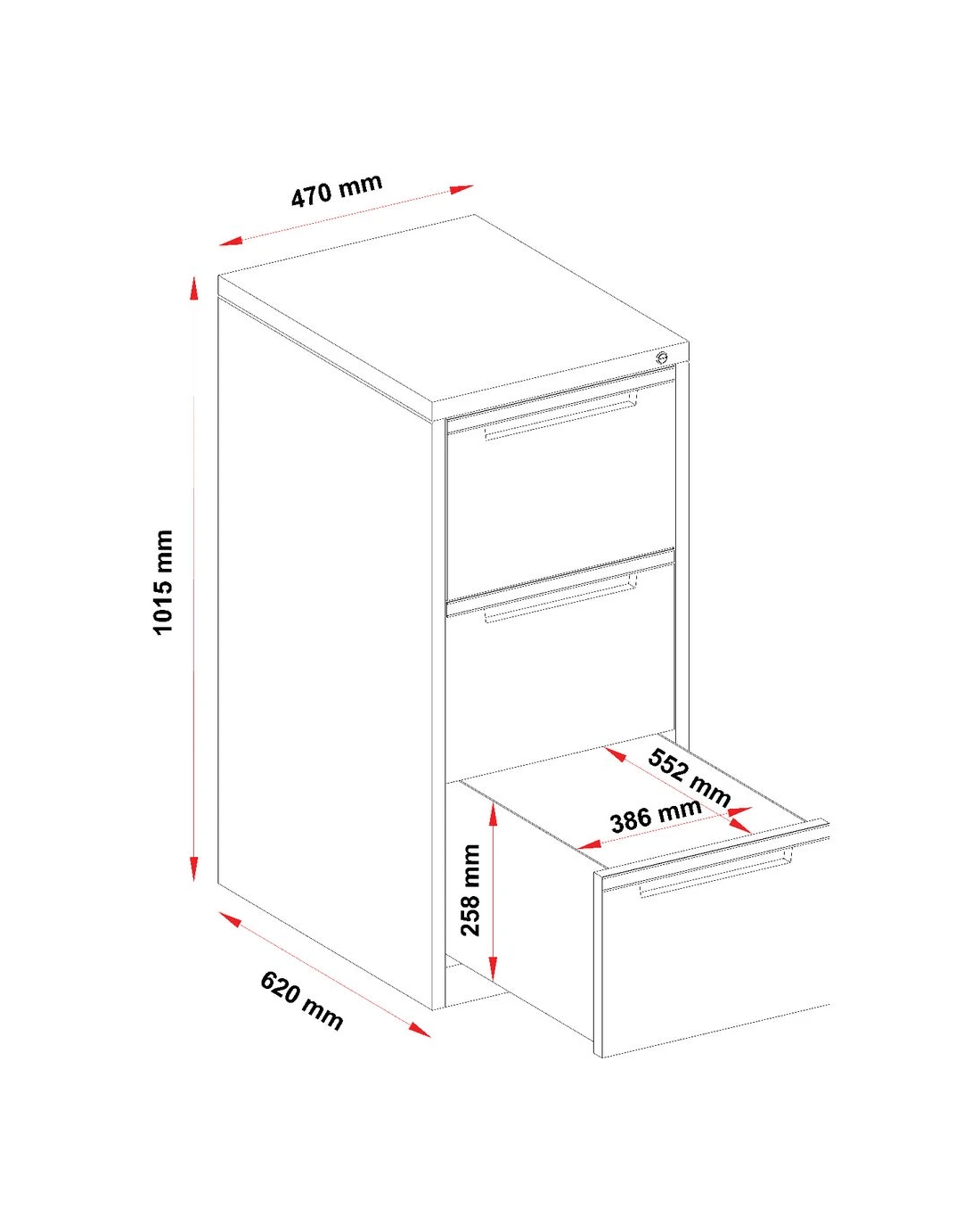 - There are 3 drawers so you can separate your documents.