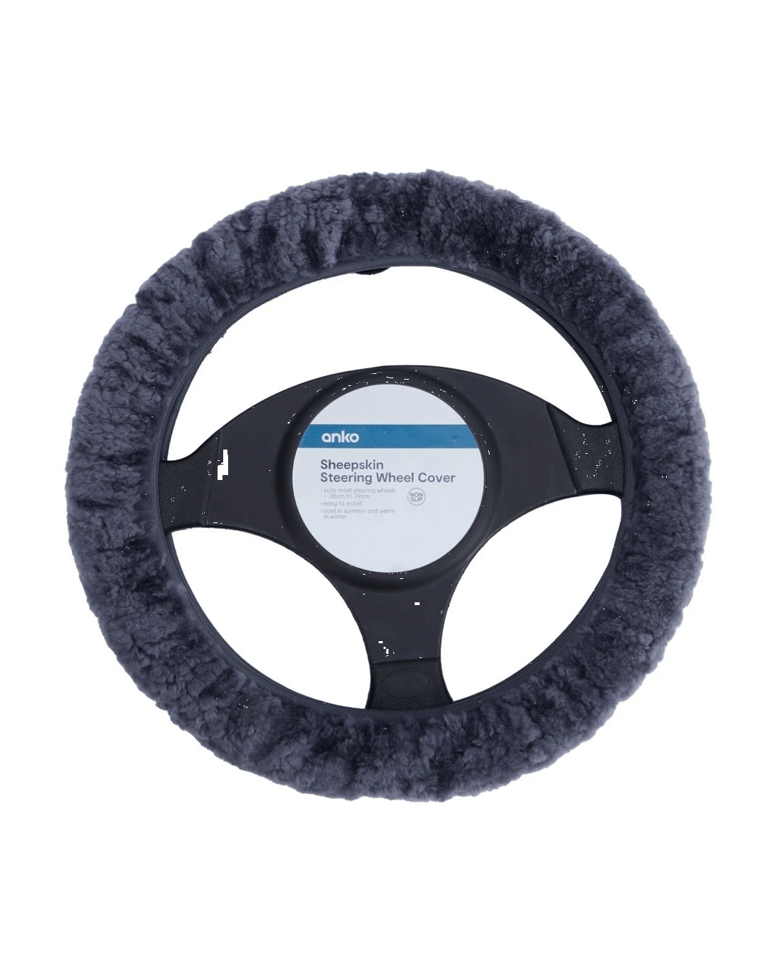 This sheepskin steering wheel cover offers luxurious protection for your steering wheel. It feels soft against your fingertips so that you can steer in comfort and style. This charcoal coloured cover is easy to use and fits most steering wheels.