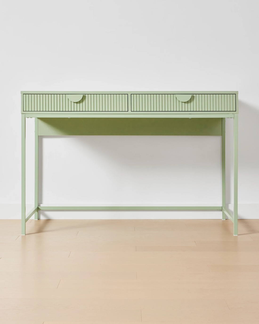 The Stevie 2 Drawer Desk combines practical functionality with a clean, modern look, making it a great addition to your home workspace. Its spacious tabletop provides ample room for your daily tasks while maintaining a compact footprint that fits easily into different room layouts.