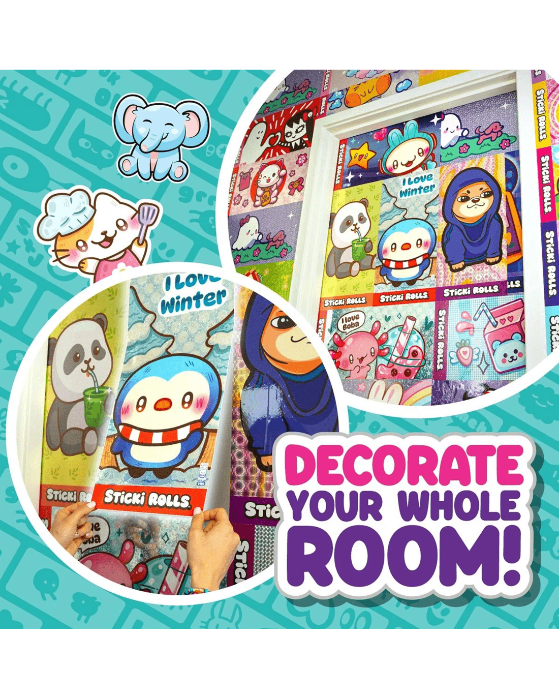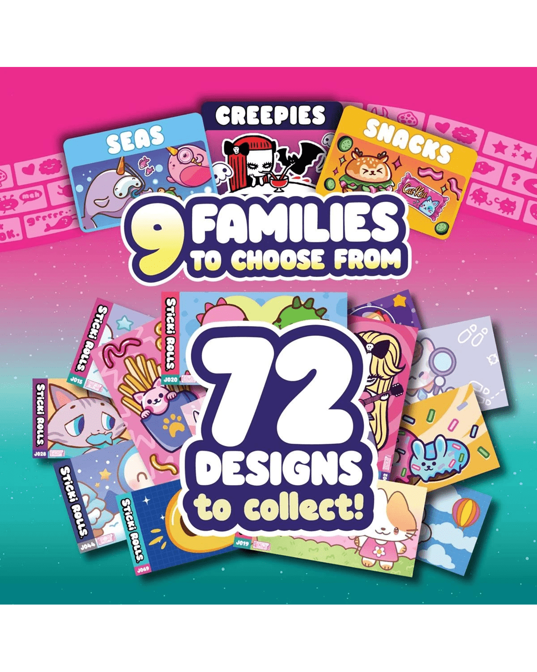- 9 unique families: Every roll delivers new Sticki Rolls original characters, themes and scenes - express your style and decorate your space your way