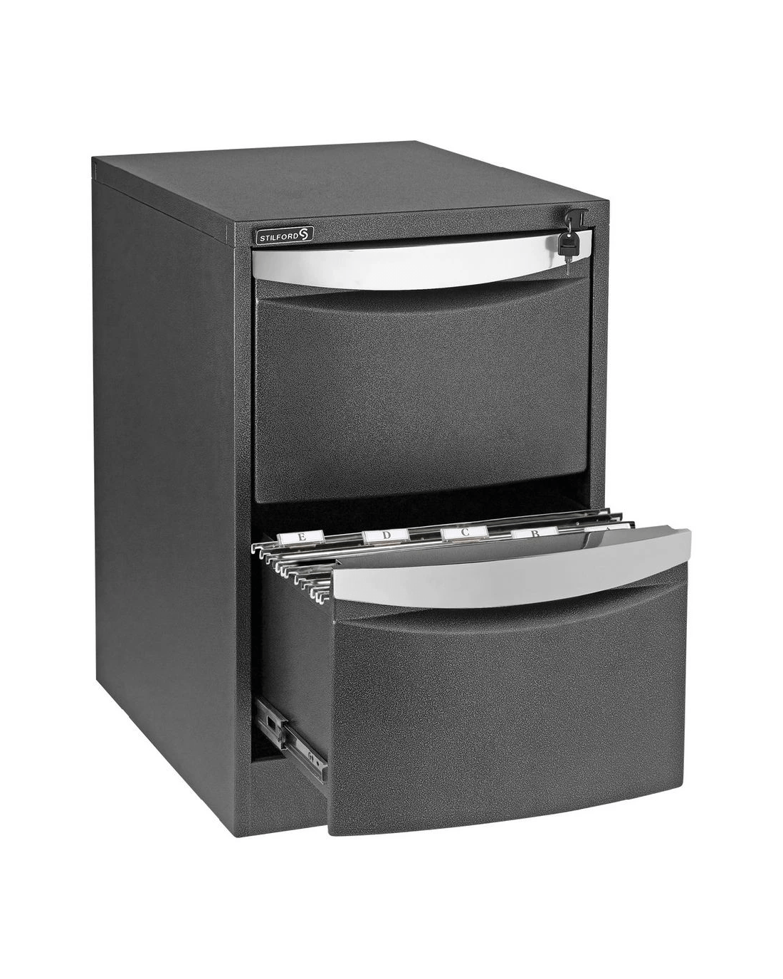 The Stilford 2 Drawer Filing Cabinet will help you to stay organised by sorting your documents into categories and subjects. This durable cabinet combines style and practicability with quality construction which allows for high volume and long term use.