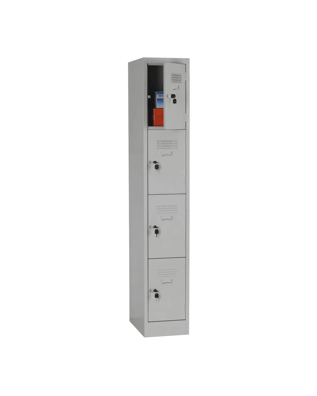 This Stilford 4 Door Office Locker is ideal for use in offices, gyms, swim centres, schools and anywhere else where employees, clients, patrons or students may need a place to store their belongings. Each door has it's own separate key allowing you to keep your items safe and secure. It has a durable, commercial grade metal construction to be long lasting.