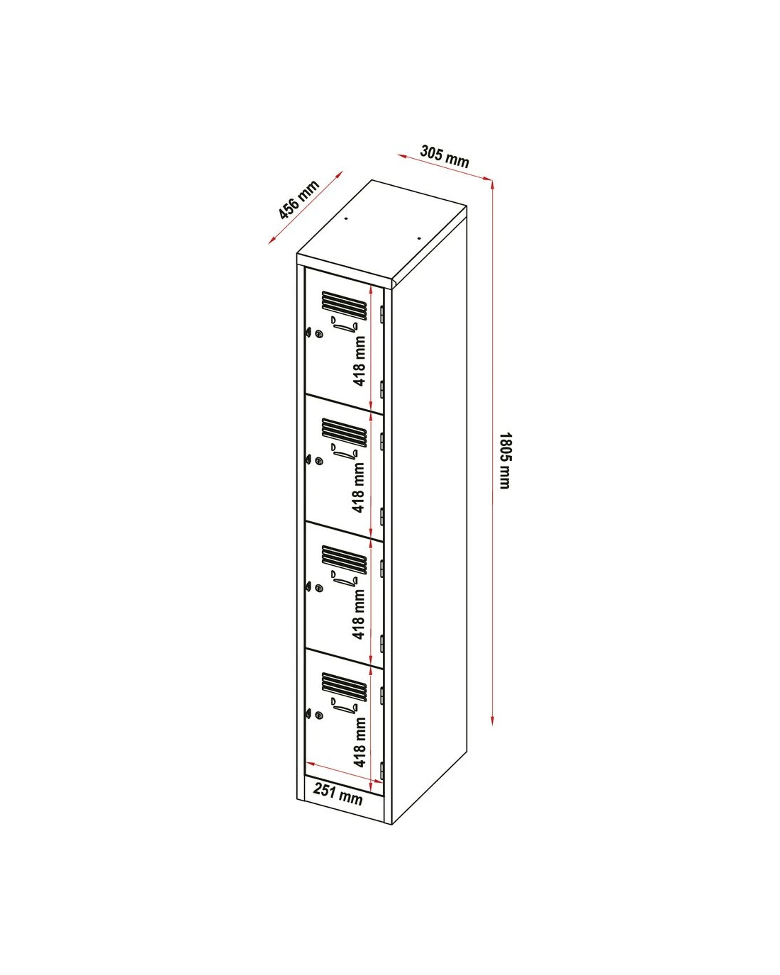 - The locker comes assembled and measures 306 W x 457 D x 1800 H mm.