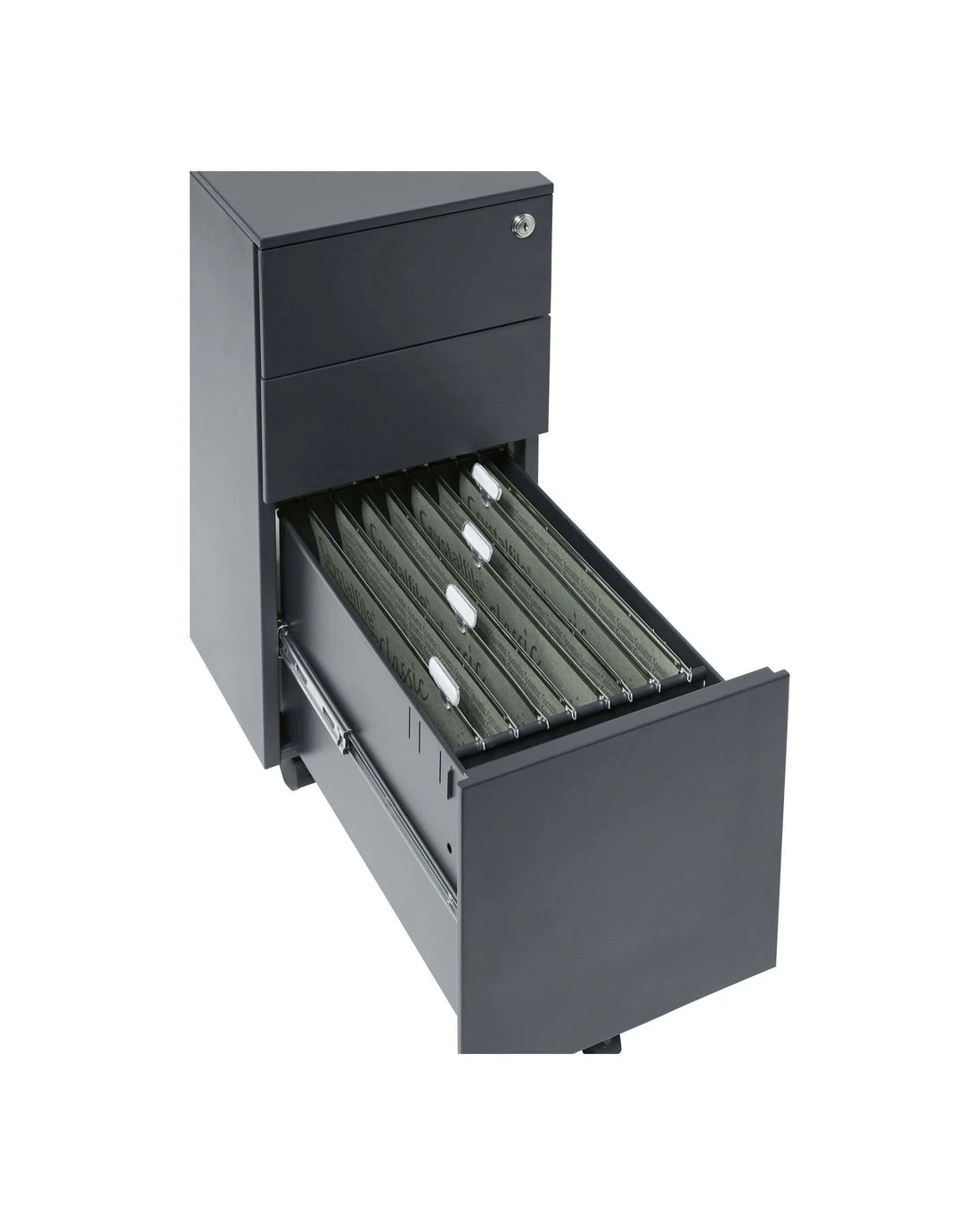 - Suspension files run from front to back for the ability to turn in your workspace and search through files.