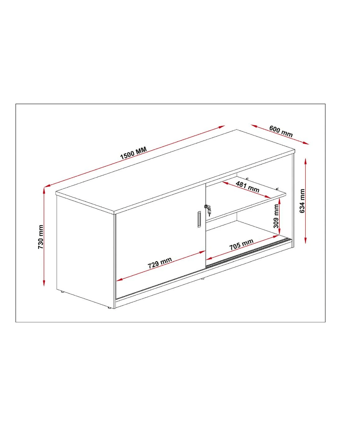 - Once assembled this credenza measures 1500 W x 600 D x 730 H mm.