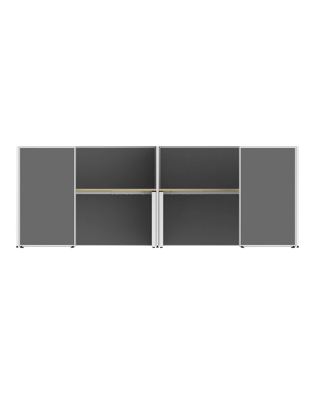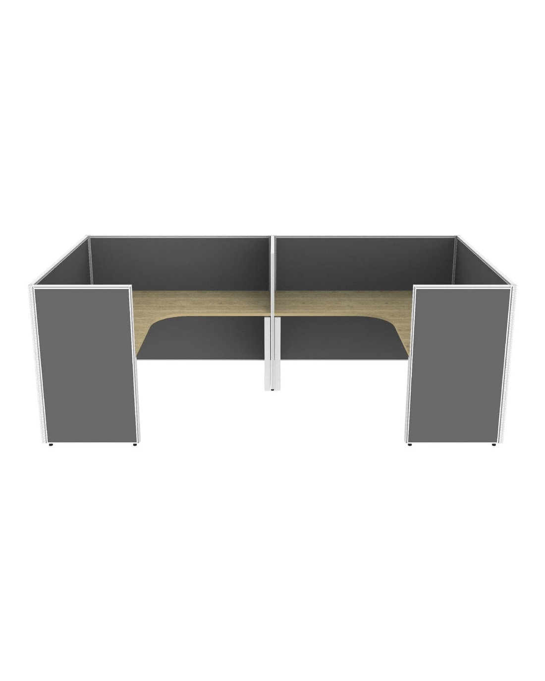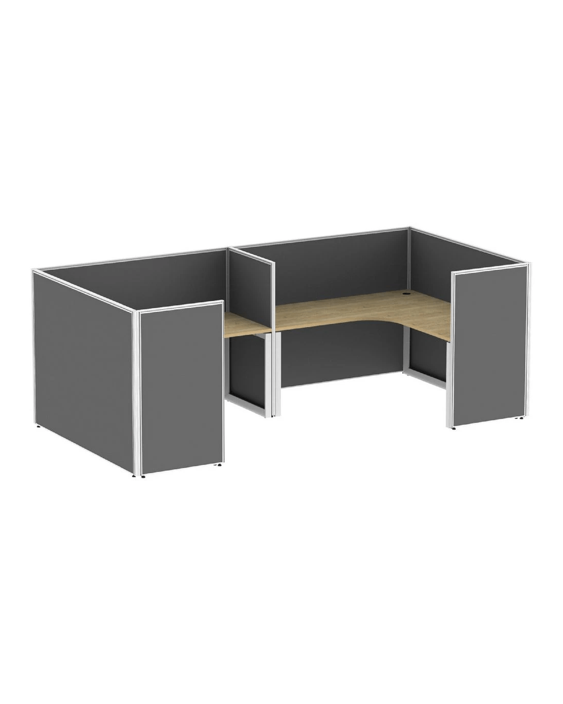 - Stilford partition screens help provide privacy for your two radius corner workstations.